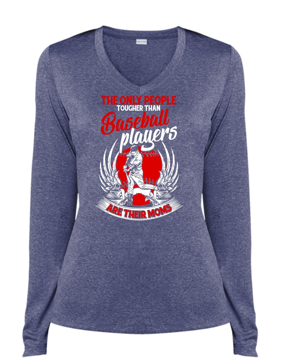 Baseball Players Are Their Moms T Shirt, Being A Baseball Mom T Shirt, Cool Shirt (Ladies LS Heather V-Neck)