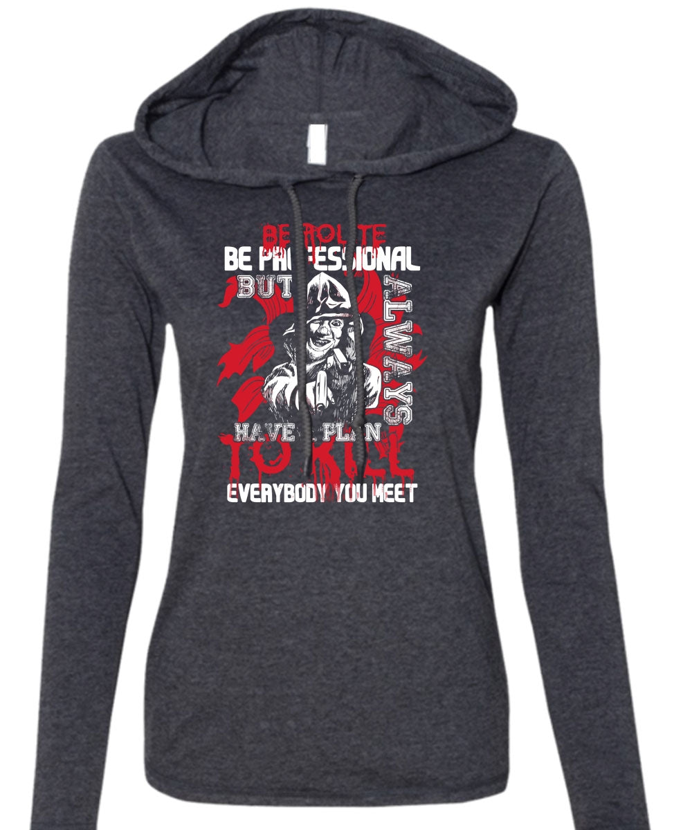 Be Polite Be Professional T Shirt, Being A Gunner T Shirt (Anvil Ladies Ringspun Hooded)