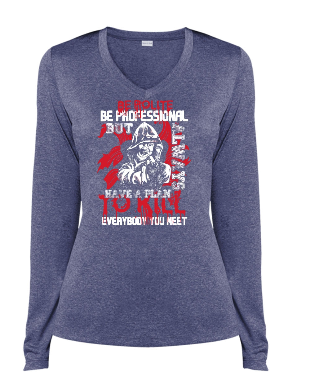 Be Polite Be Professional T Shirt, Being A Gunner T Shirt, Cool Shirt (Ladies LS Heather V-Neck)