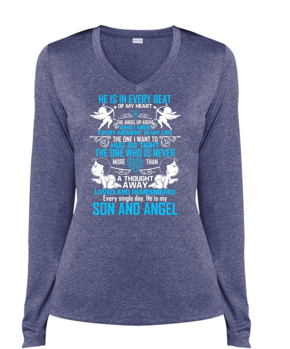 Beat Of My Heart T Shirt, Son And Angel T Shirt, Cool Shirt (Ladies LS Heather V-Neck)
