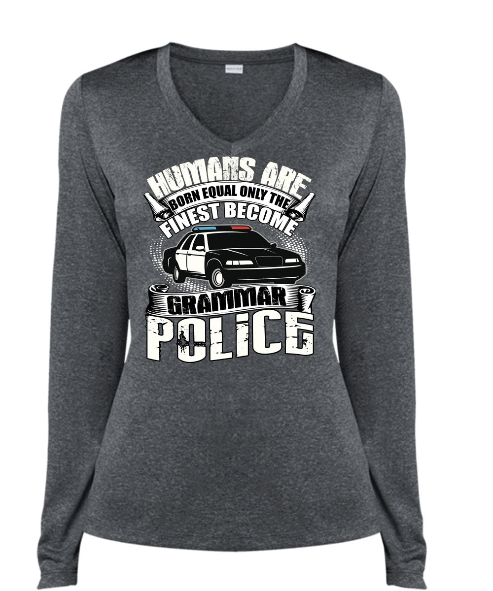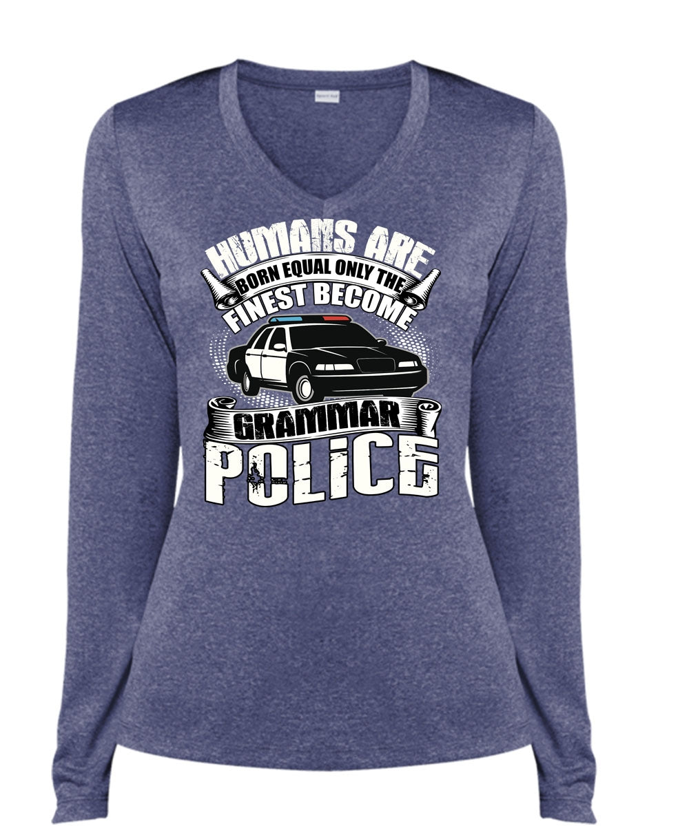 Become Grammar Police T Shirt, Humans Are Born Equal T Shirt, Cool Shirt (Ladies LS Heather V-Neck)