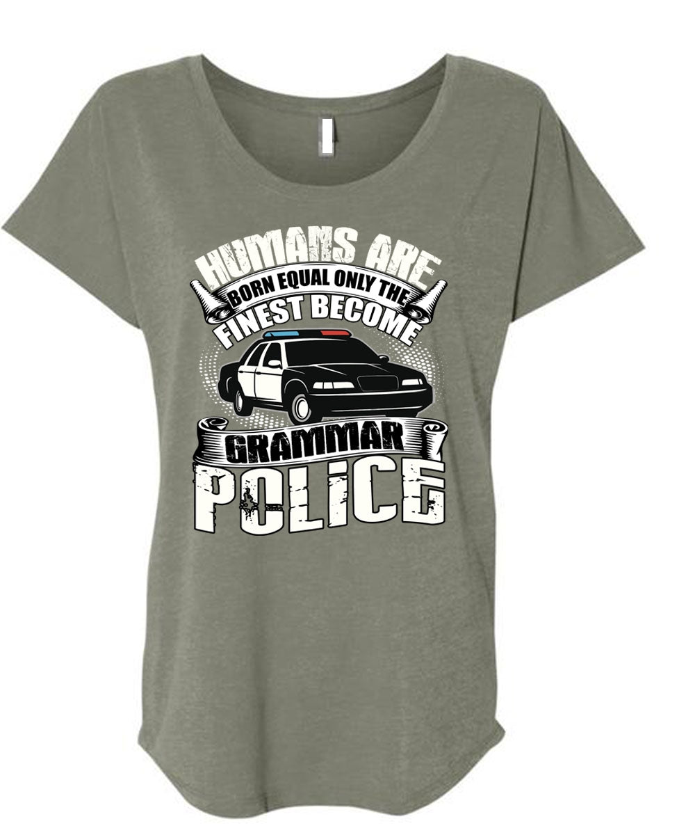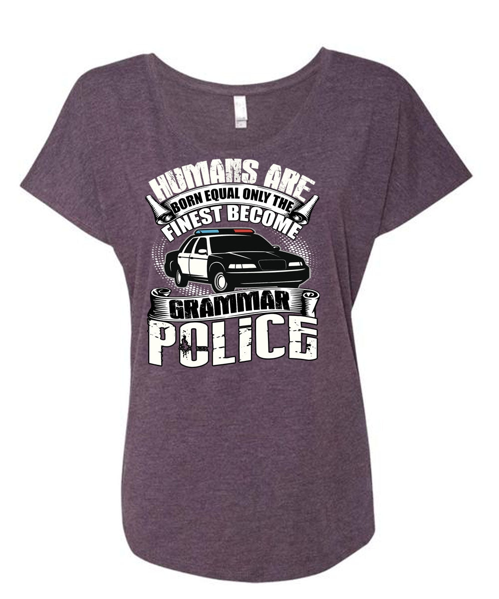 Become Grammar Police T Shirt, Humans Are Born Equal T Shirt, Cool Shirt (Ladies' Triblend Dolman Sleeve)