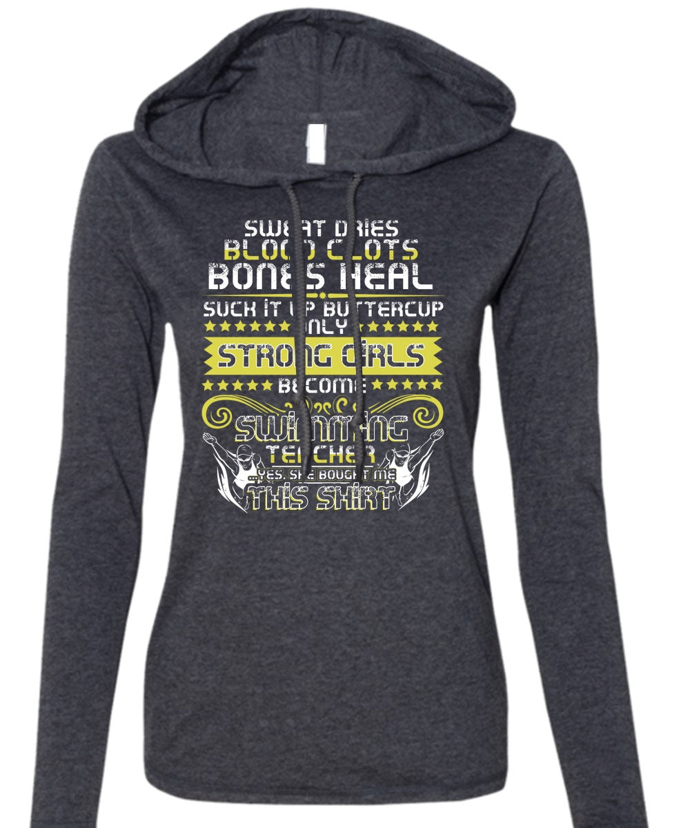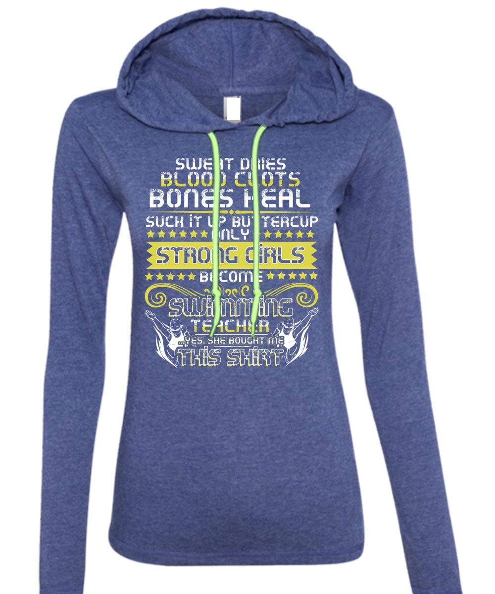 Become Swimming Teacher T Shirt, Sweat Dries Blood Clots T Shirt (Anvil Ladies Ringspun Hooded)