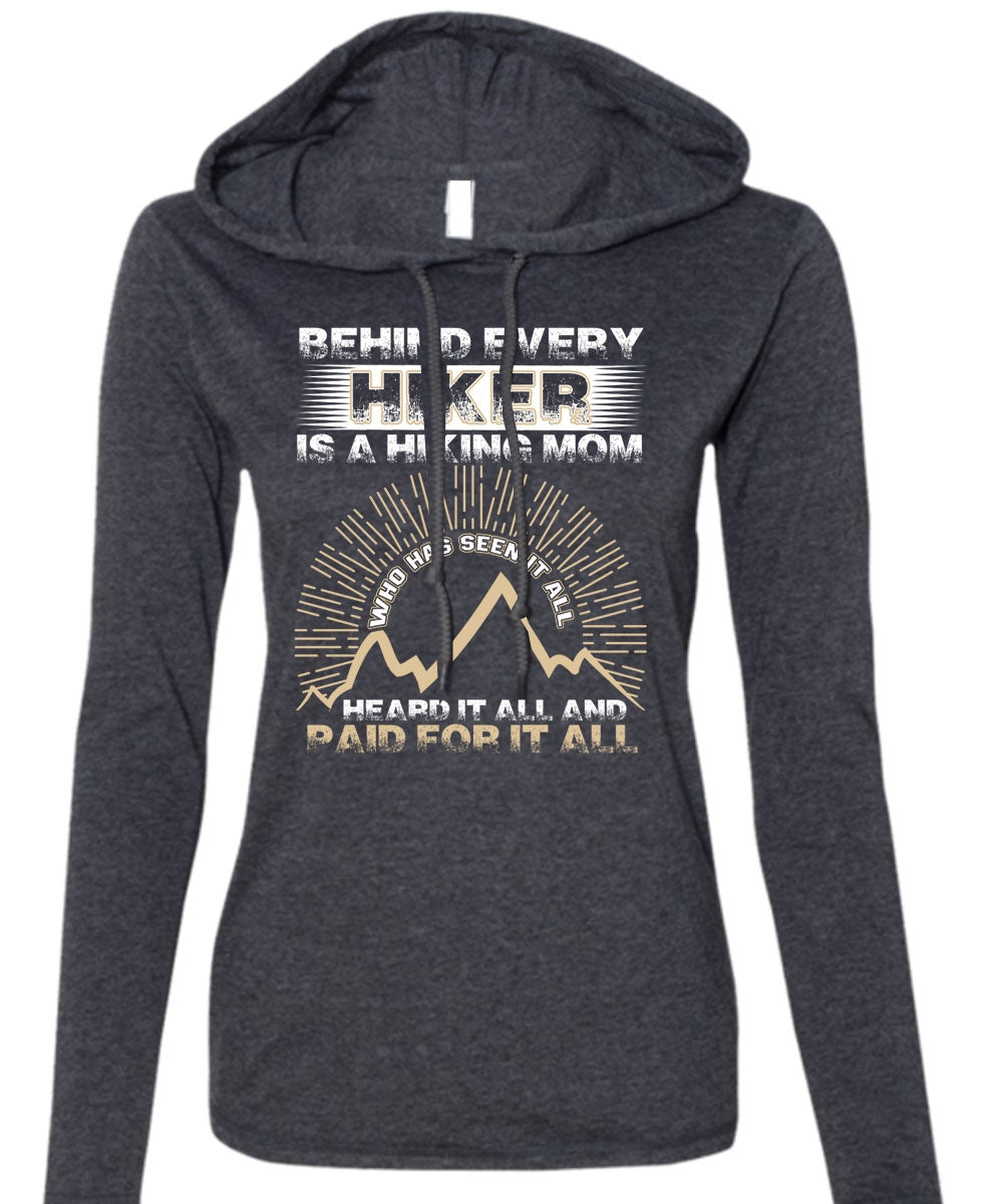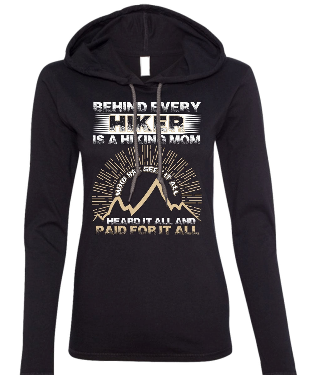 Behind Every Hiker Is A Hiking Mom T Shirt, Being A Hiker T Shirt (Anvil Ladies Ringspun Hooded)
