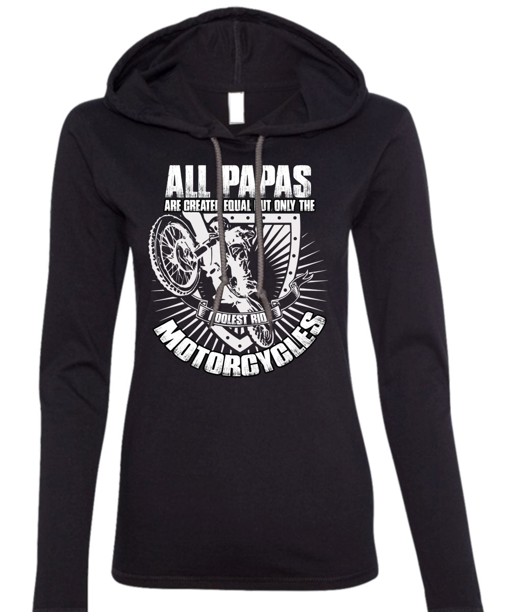 Coolest Ride Motorcycles T Shirt, All Papas Are Created Equal T Shirt (Anvil Ladies Ringspun Hooded)