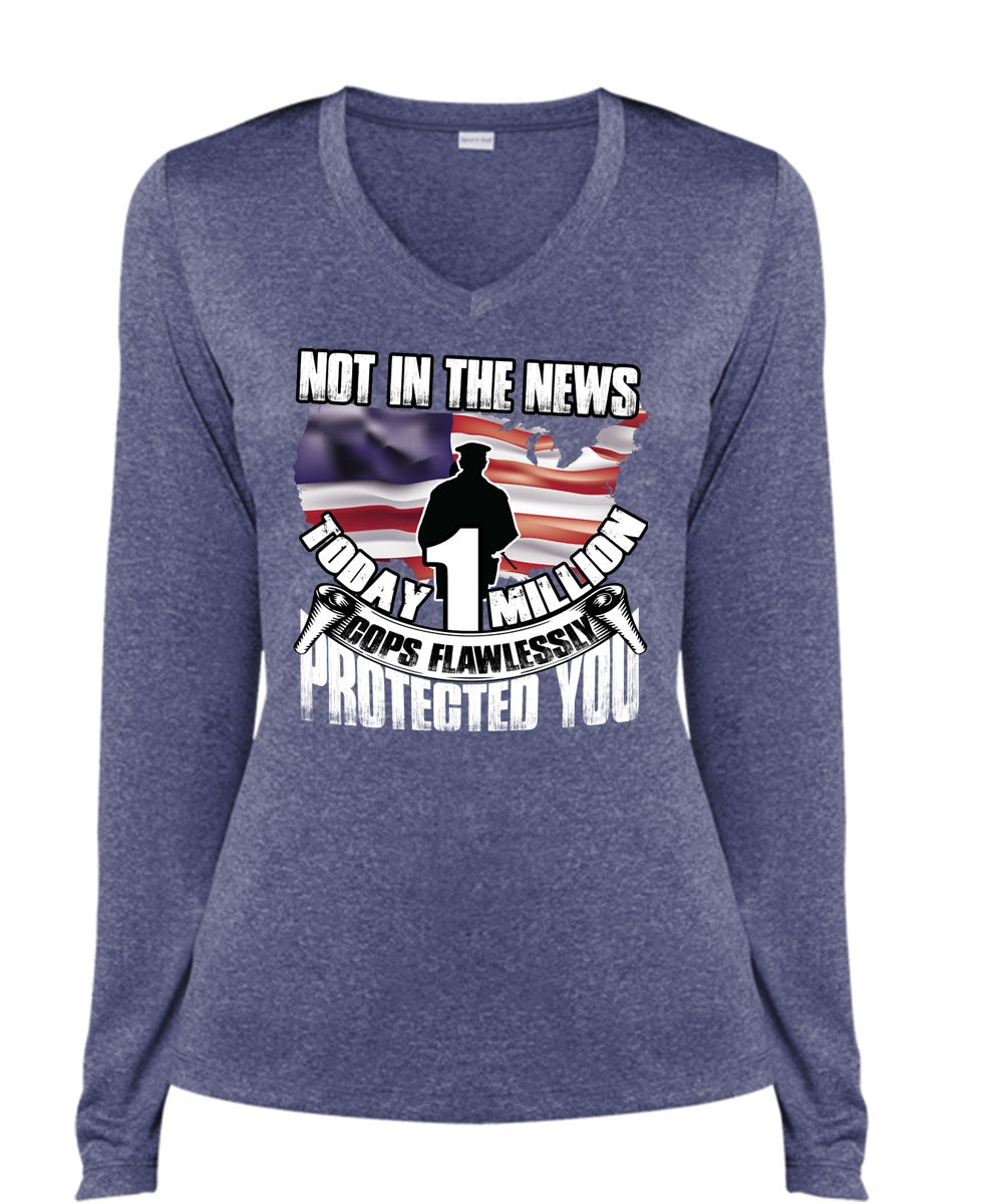 Cops Flawlessly Protected You T Shirt, Being A Police T Shirt, Cool Shirt (Ladies LS Heather V-Neck)