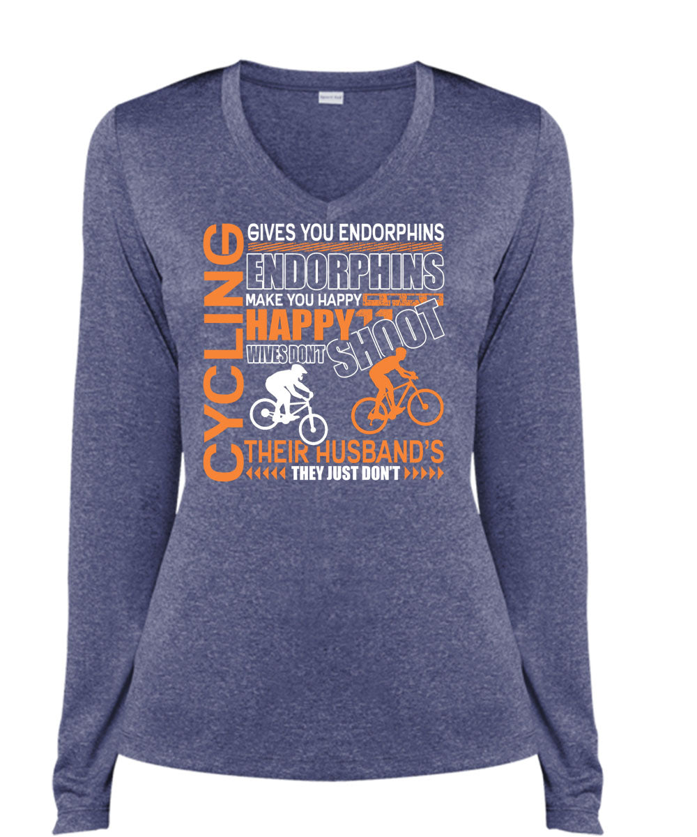 Cycling Gives You Endorphins T Shirt, Make You Happy T Shirt, Cool Shirt (Ladies LS Heather V-Neck)