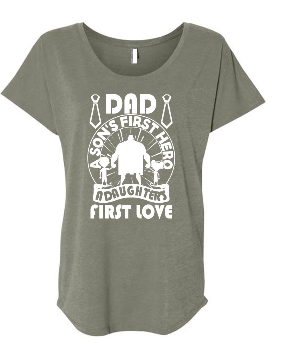 Dad A Son's First T Shirt, A Daughter's First Love T Shirt, Cool Shirt (Ladies' Triblend Dolman Sleeve)