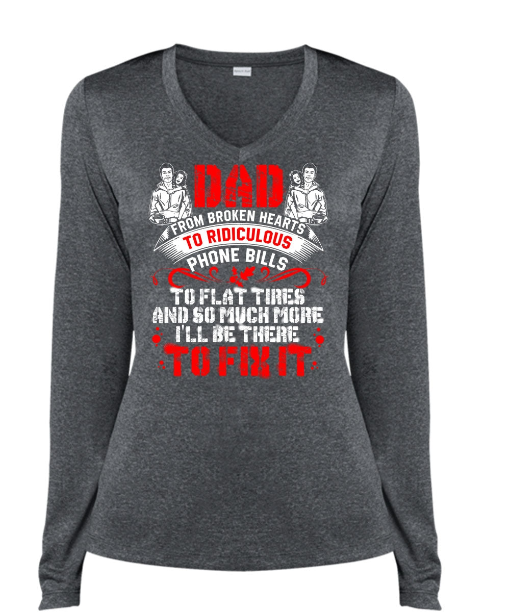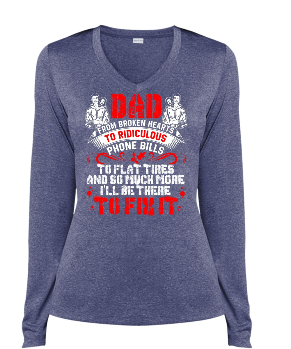 Dad From Broken Heart T Shirt, Being A Papa T Shirt, Cool Shirt (Ladies LS Heather V-Neck)