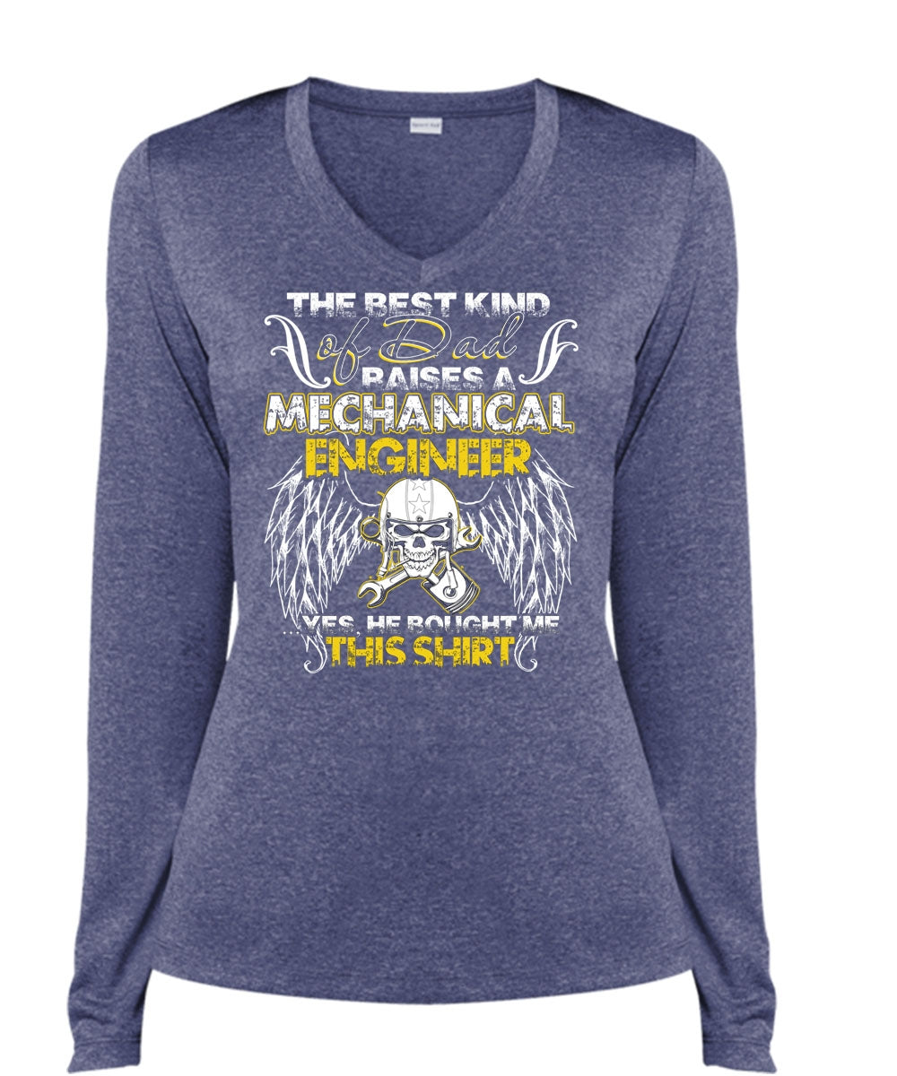 Dad Raises A Mechanical Engineer T Shirt, Being A Mechanic T Shirt, Cool Shirt (Ladies LS Heather V-Neck)