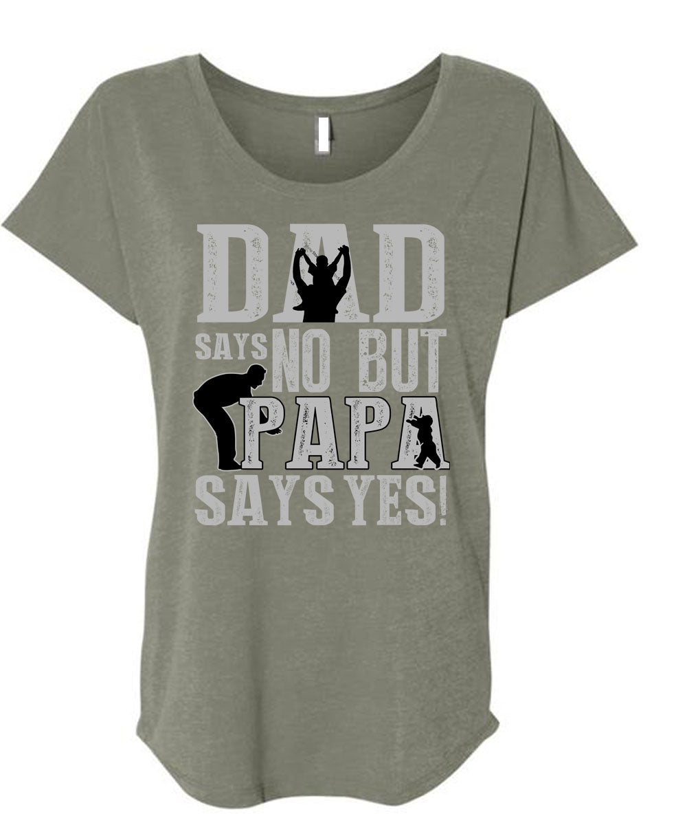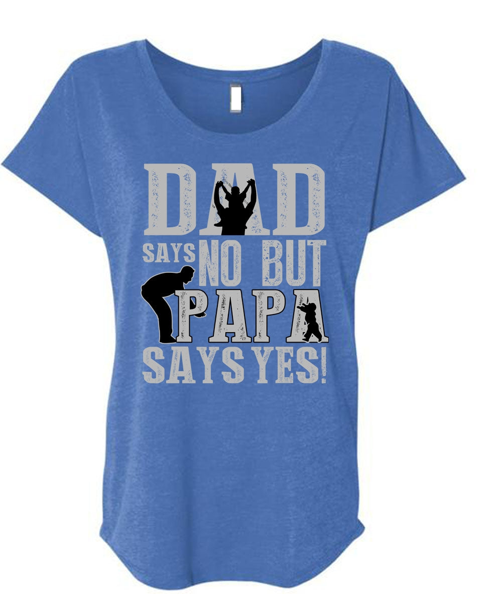Dad Says No But Papa Says Yes T Shirt, Being A Papa T Shirt, Cool Shirt (Ladies' Triblend Dolman Sleeve)
