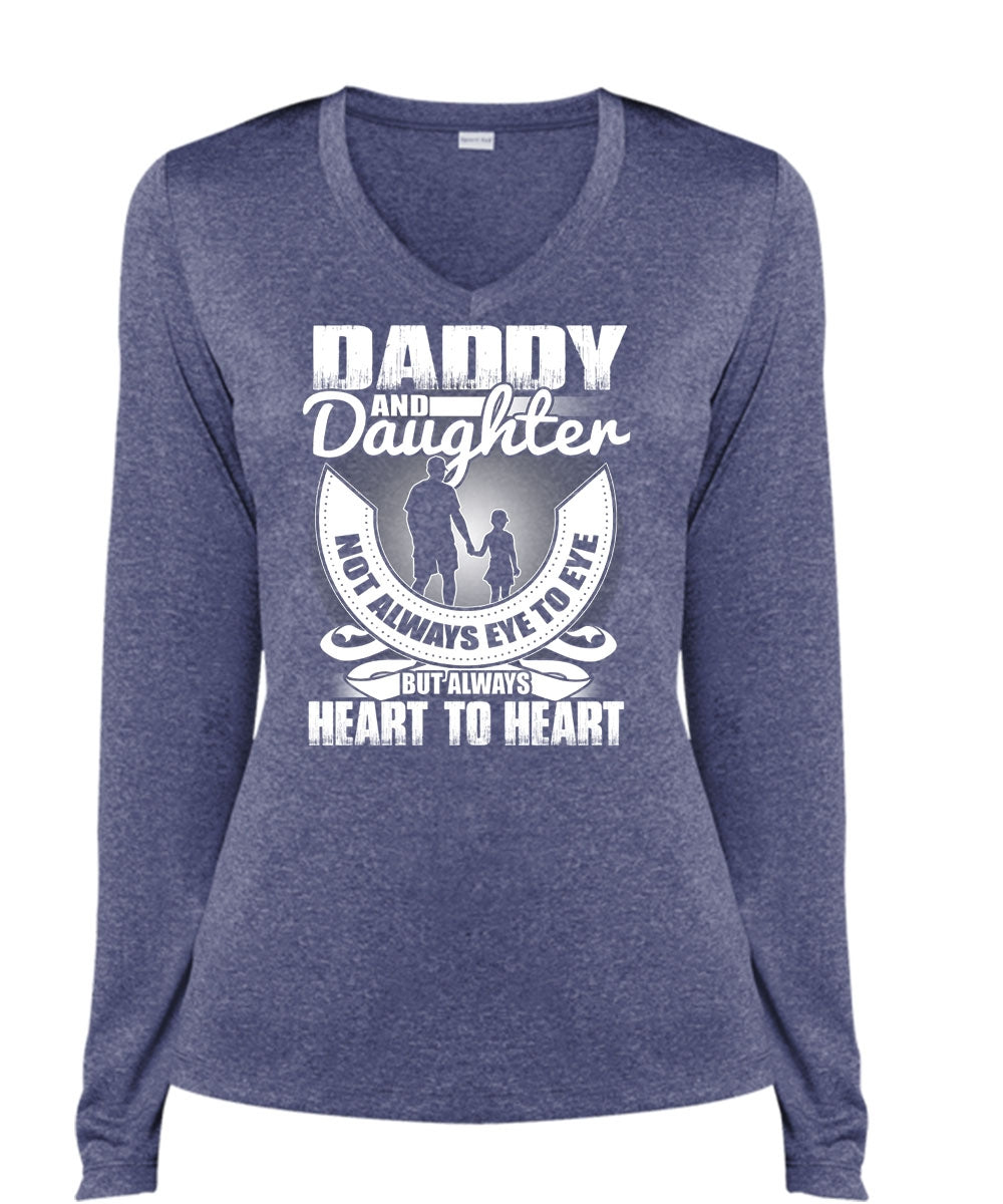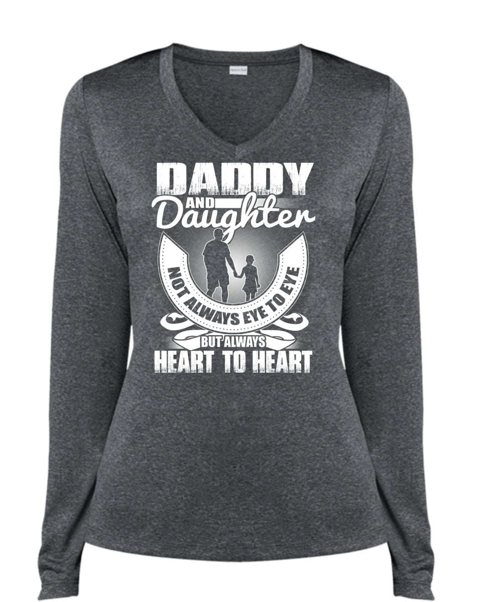 Daddy And Daughter T Shirt, Heart To Heart T Shirt, Cool Shirt (Ladies LS Heather V-Neck)