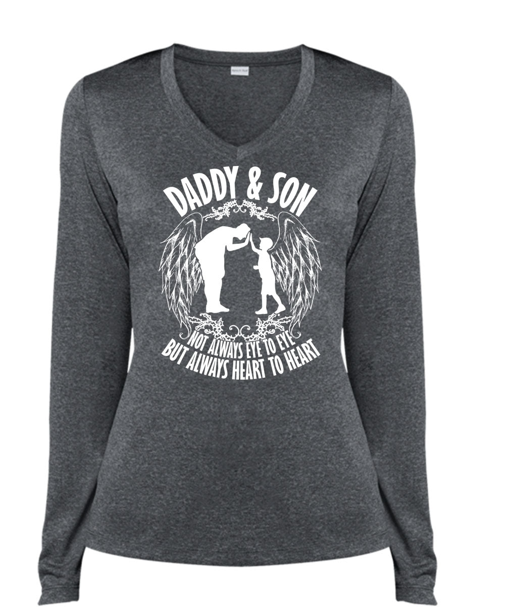 Daddy And Son Not Always Eye To Eye T Shirt, Being A Son T Shirt, Cool Shirt (Ladies LS Heather V-Neck)