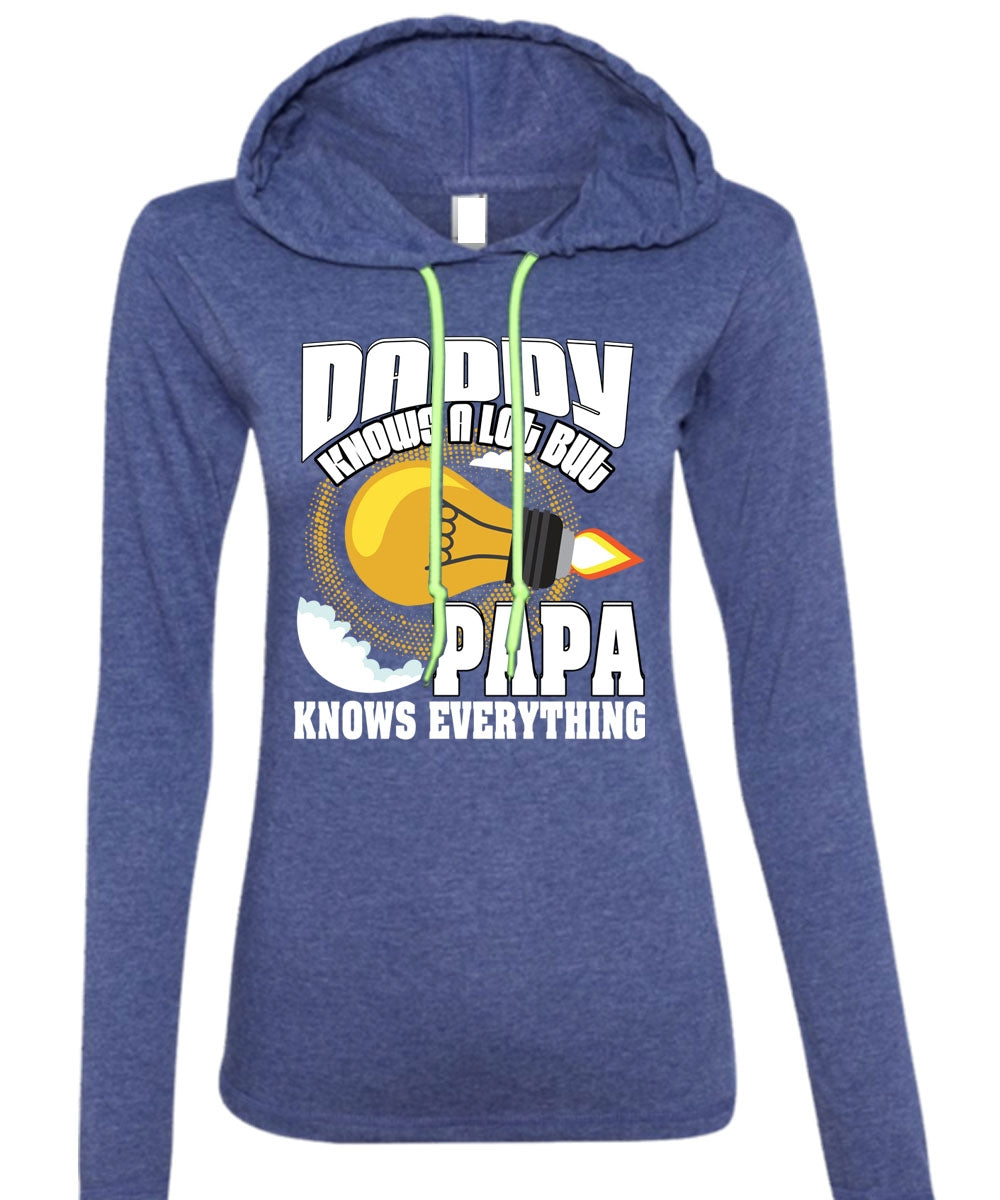Daddy Knows A Lot T Shirt, Papa Knows Everything T Shirt (Anvil Ladies Ringspun Hooded)