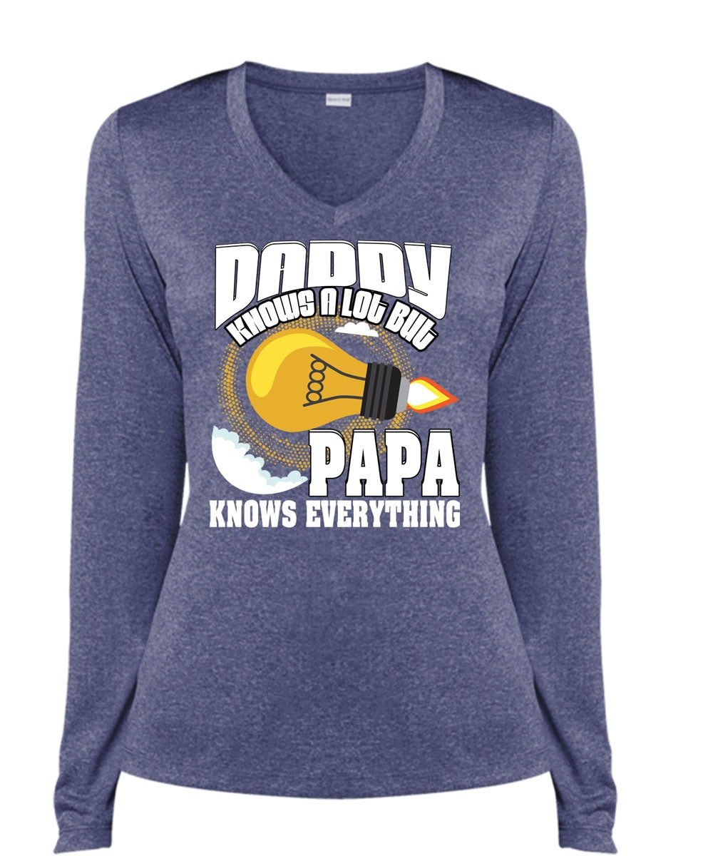 Daddy Knows A Lot T Shirt, Papa Knows Everything T Shirt, Cool Shirt (Ladies LS Heather V-Neck)