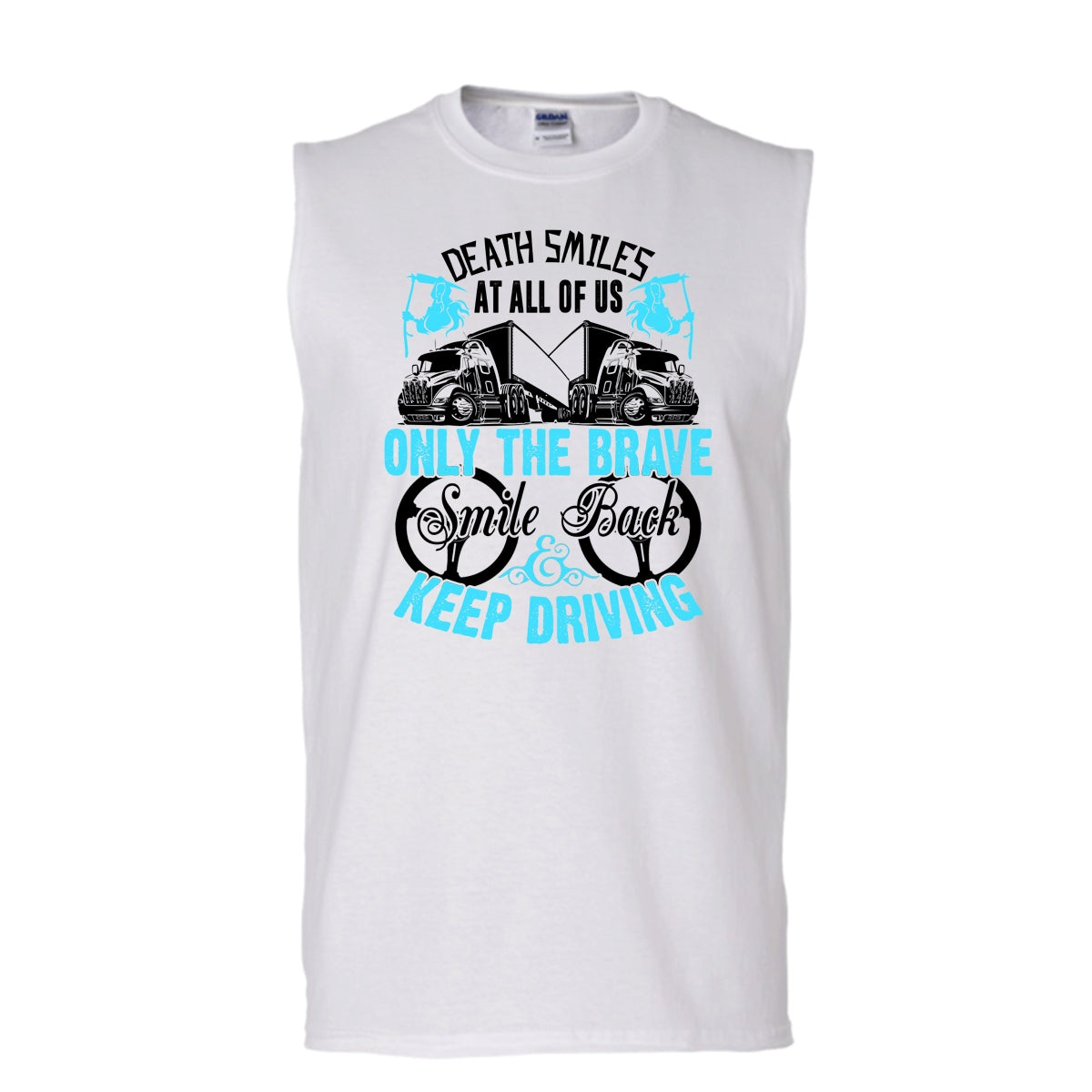 Death Smiles At All Of Us T Shirt, Coolest Truck Driver Tank Top (Men's Cotton Sleeveless)