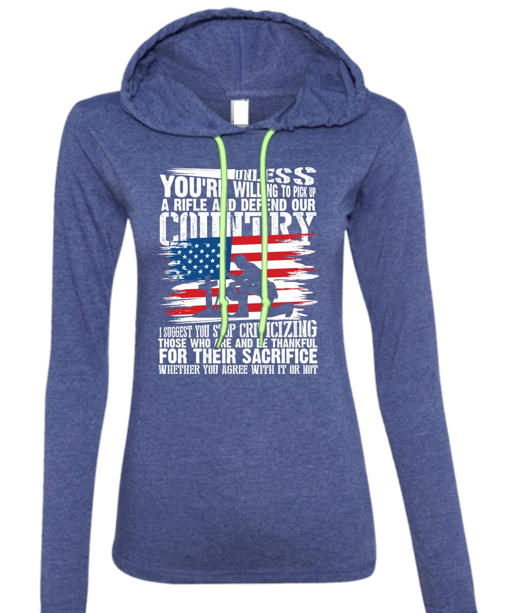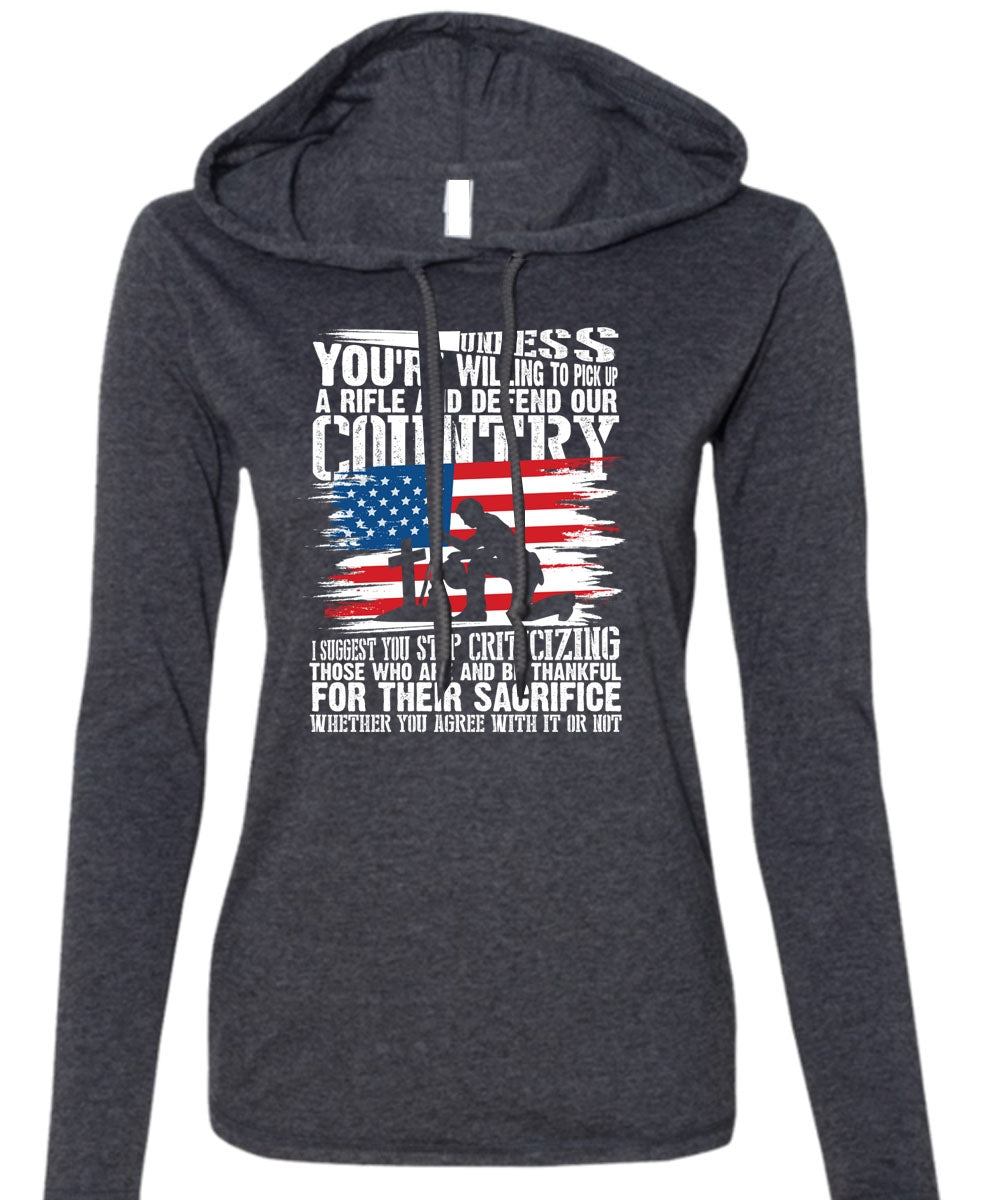 Defend Our Country T Shirt, Being A Veteran T Shirt (Anvil Ladies Ringspun Hooded)