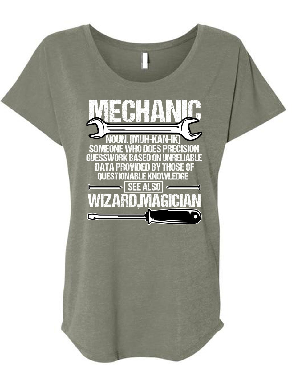 Does Precision Guesswork T Shirt, Being A Mechanic T Shirt, Cool Shirt (Ladies' Triblend Dolman Sleeve)