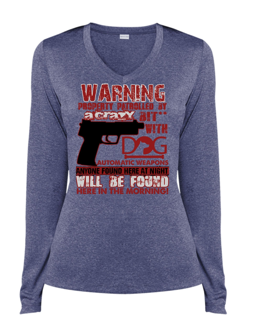 Dog Automatic Weapons T Shirt, Being A Veteran T Shirt, Cool Shirt (Ladies LS Heather V-Neck)