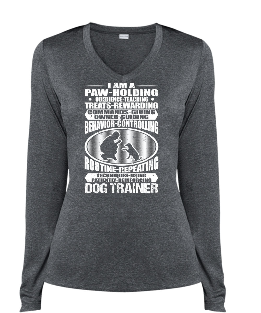 Dog Trainer T Shirt, I Am A Paw Holding T Shirt, Cool Shirt (Ladies LS Heather V-Neck)