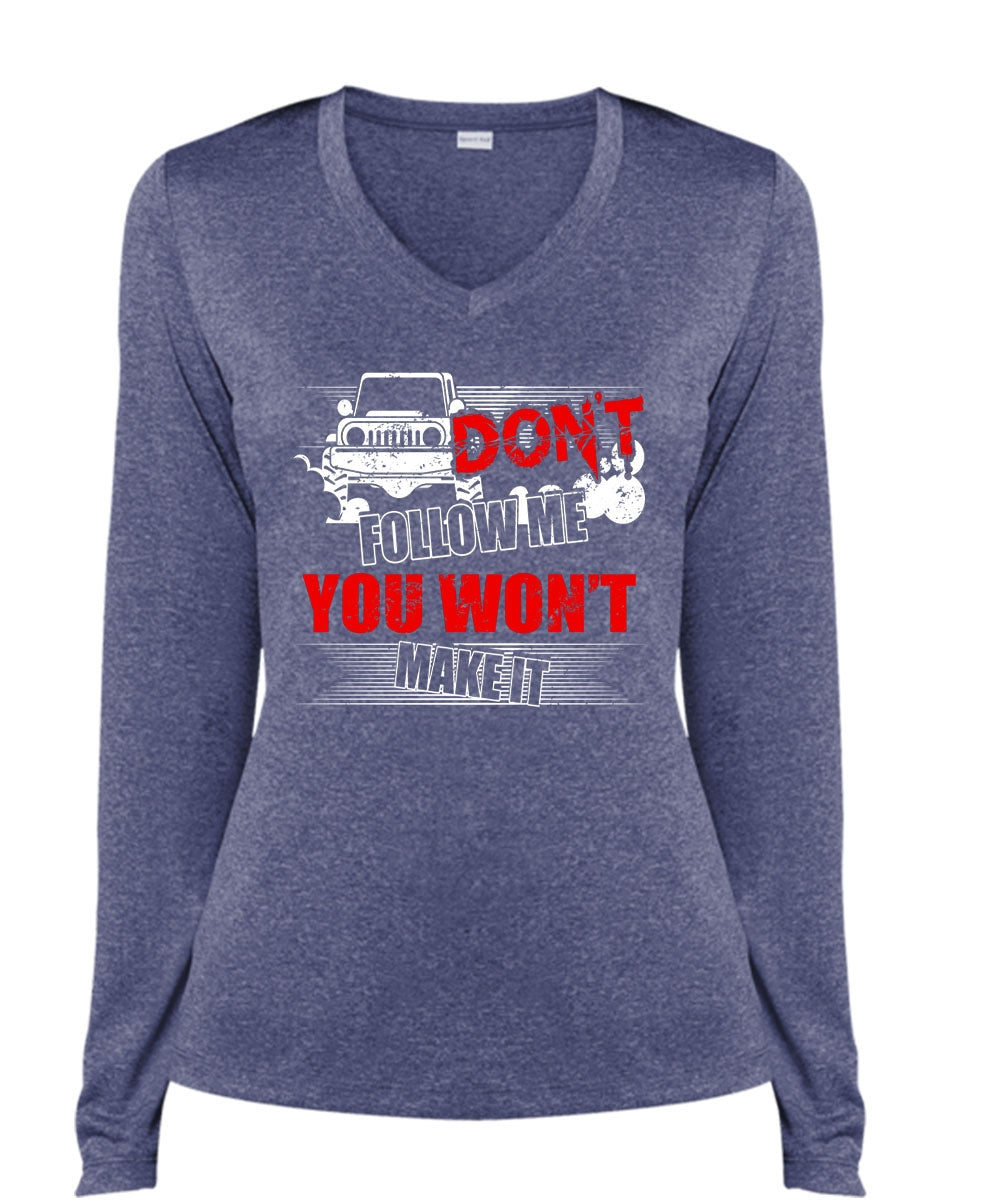 Don't Follow Me T Shirt, You Won't Make It T Shirt, Cool Shirt (Ladies LS Heather V-Neck)