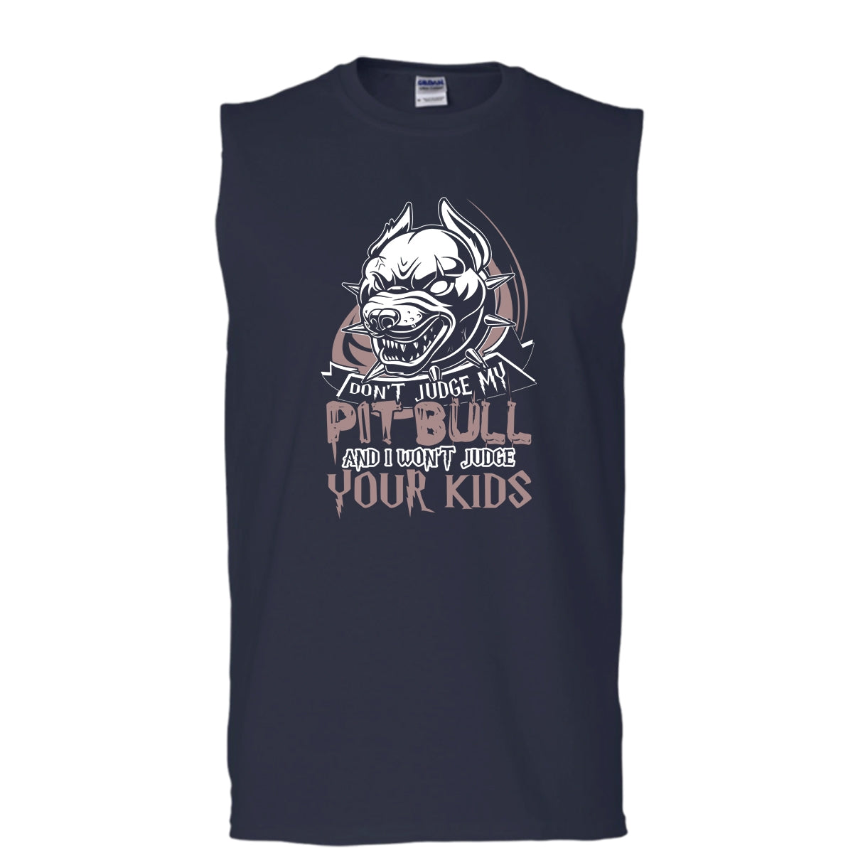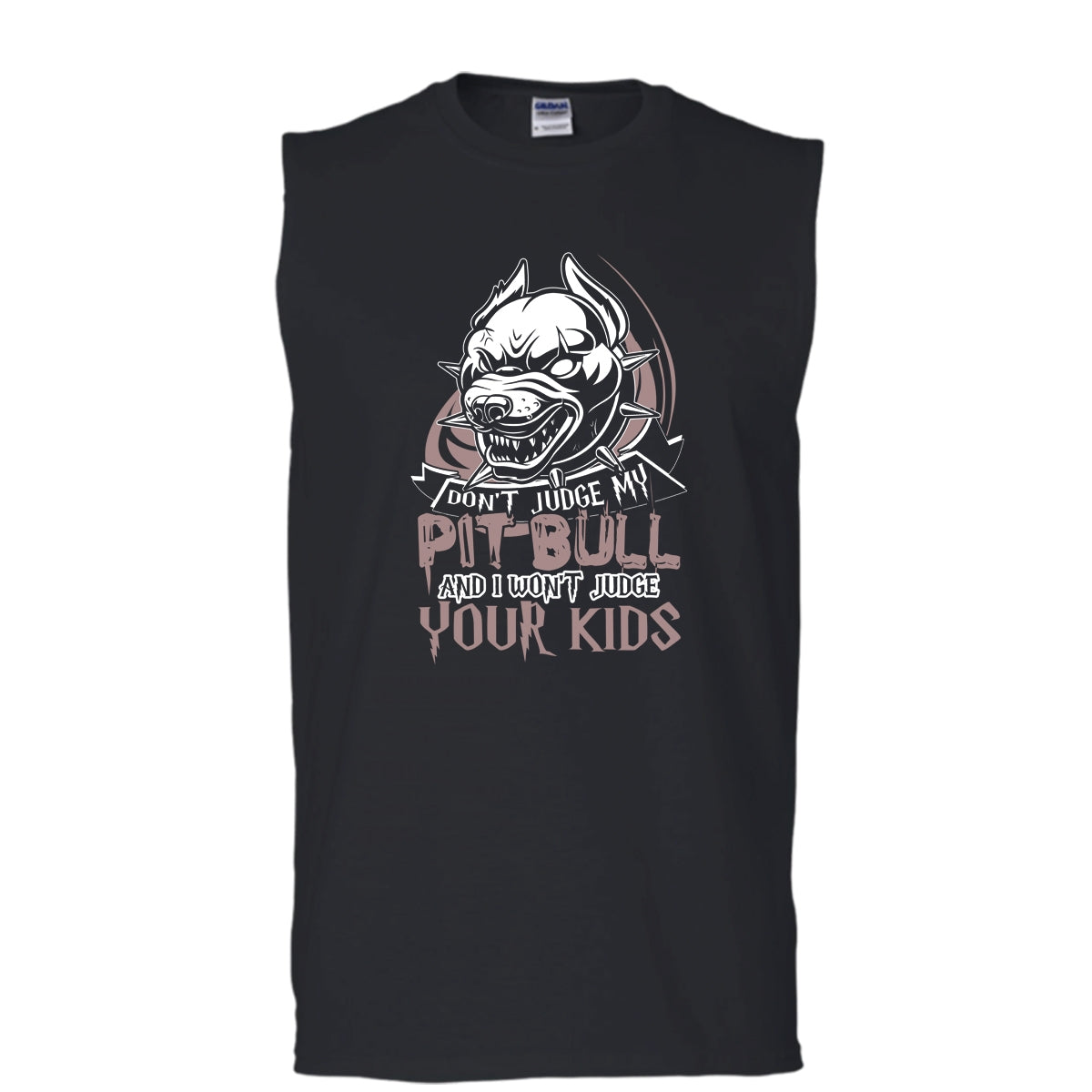 Don't Judge My Pit Bull T Shirt, I Won't Judge Your Kids Tank Top (Men's Cotton Sleeveless)