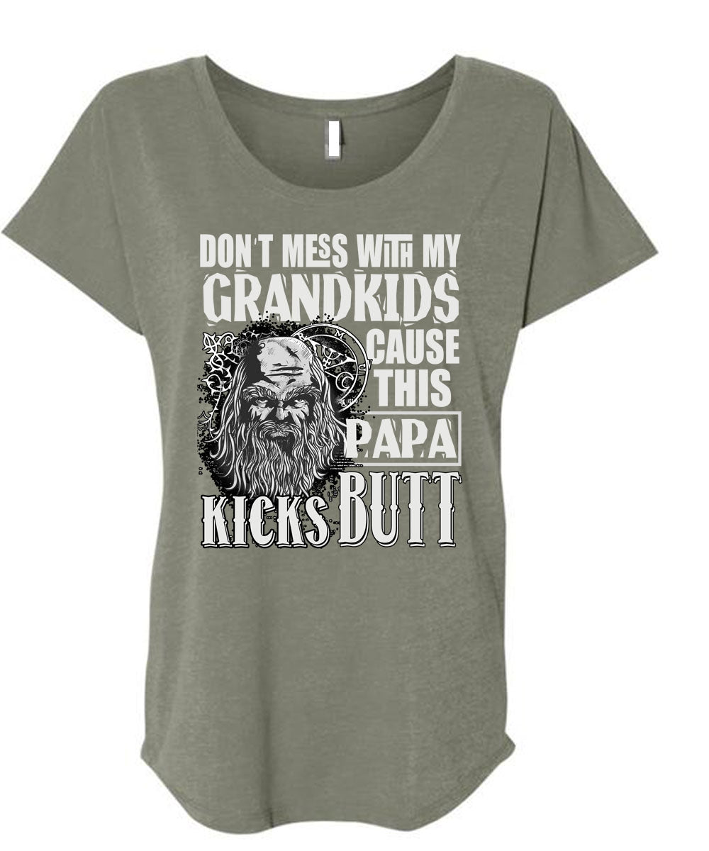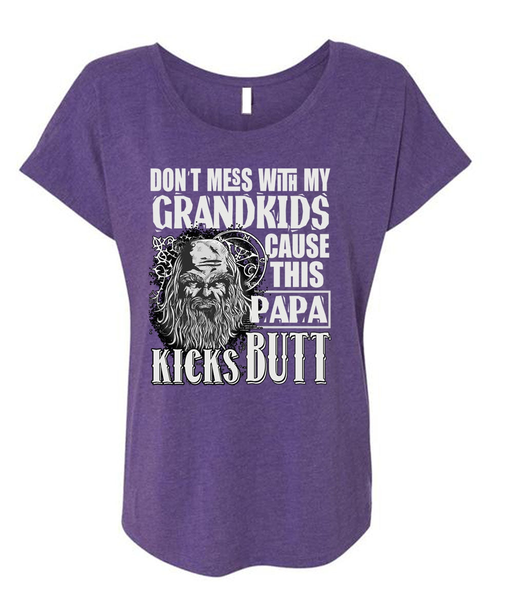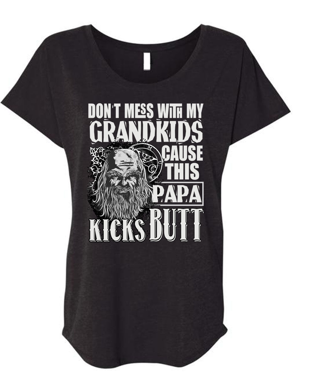 Don't Mess With My Grandkids T Shirt, This Papa Kicks Built T Shirt, Cool Shirt (Ladies' Triblend Dolman Sleeve)