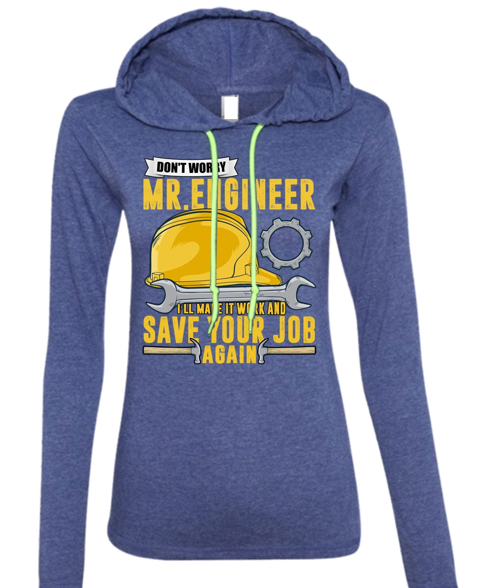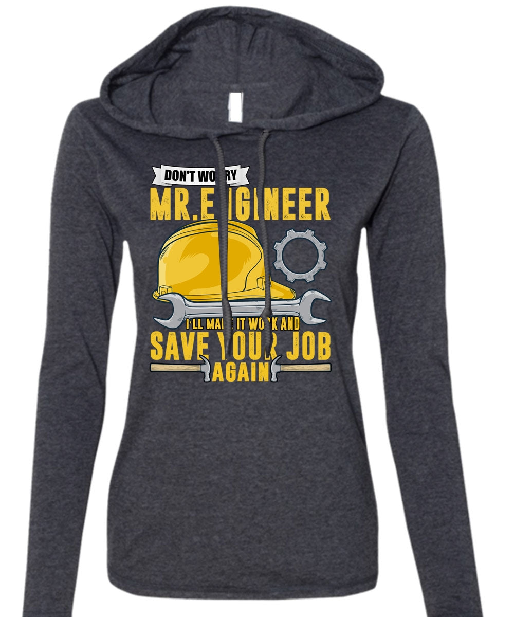 Don't Worry Mr. Engineer T Shirt, Save Your Job Again T Shirt (Anvil Ladies Ringspun Hooded)