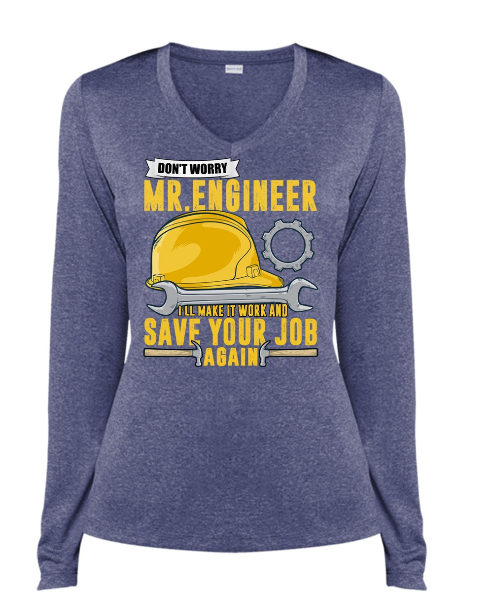 Don't Worry Mr. Engineer T Shirt, Save Your Job Again T Shirt, Cool Shirt (Ladies LS Heather V-Neck)