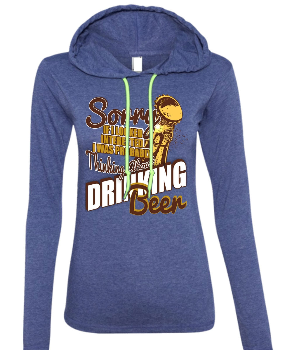Drinking Beer T Shirt, Being A Drinker T Shirt (Anvil Ladies Ringspun Hooded)