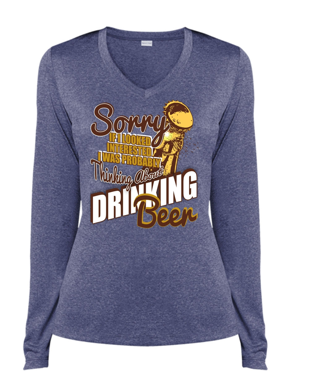 Drinking Beer T Shirt, Being A Drinker T Shirt, Cool Shirt (Ladies LS Heather V-Neck)