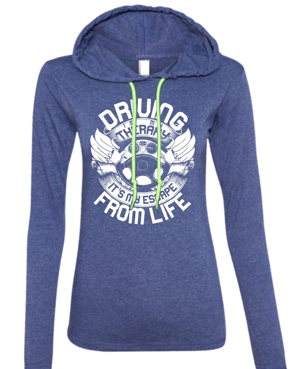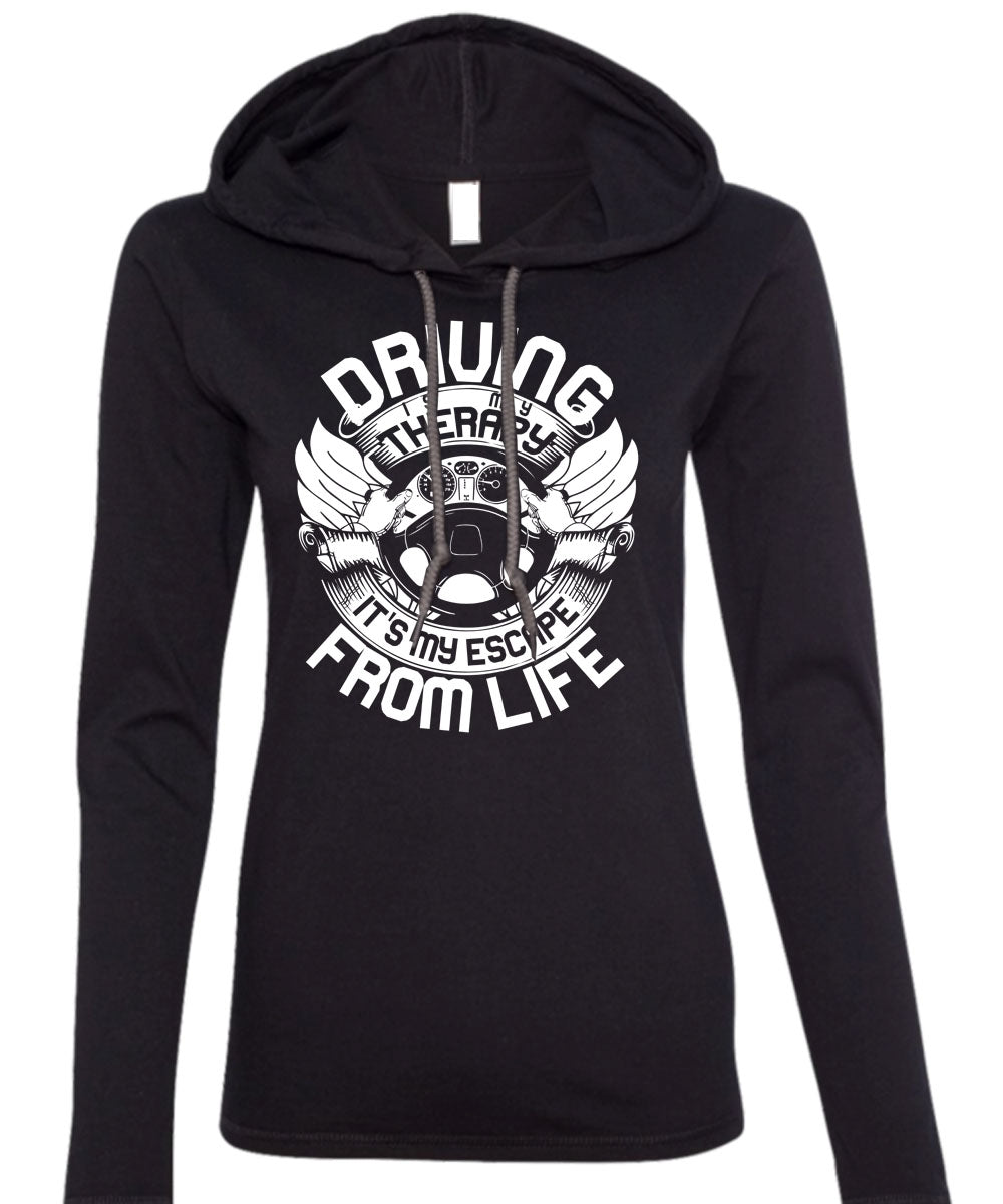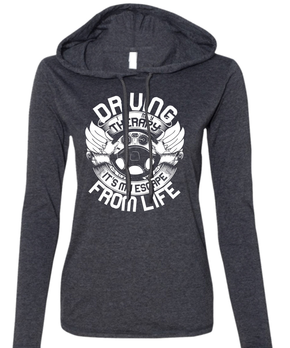Driving Is My Therapy T Shirt, Being A Driver T Shirt (Anvil Ladies Ringspun Hooded)