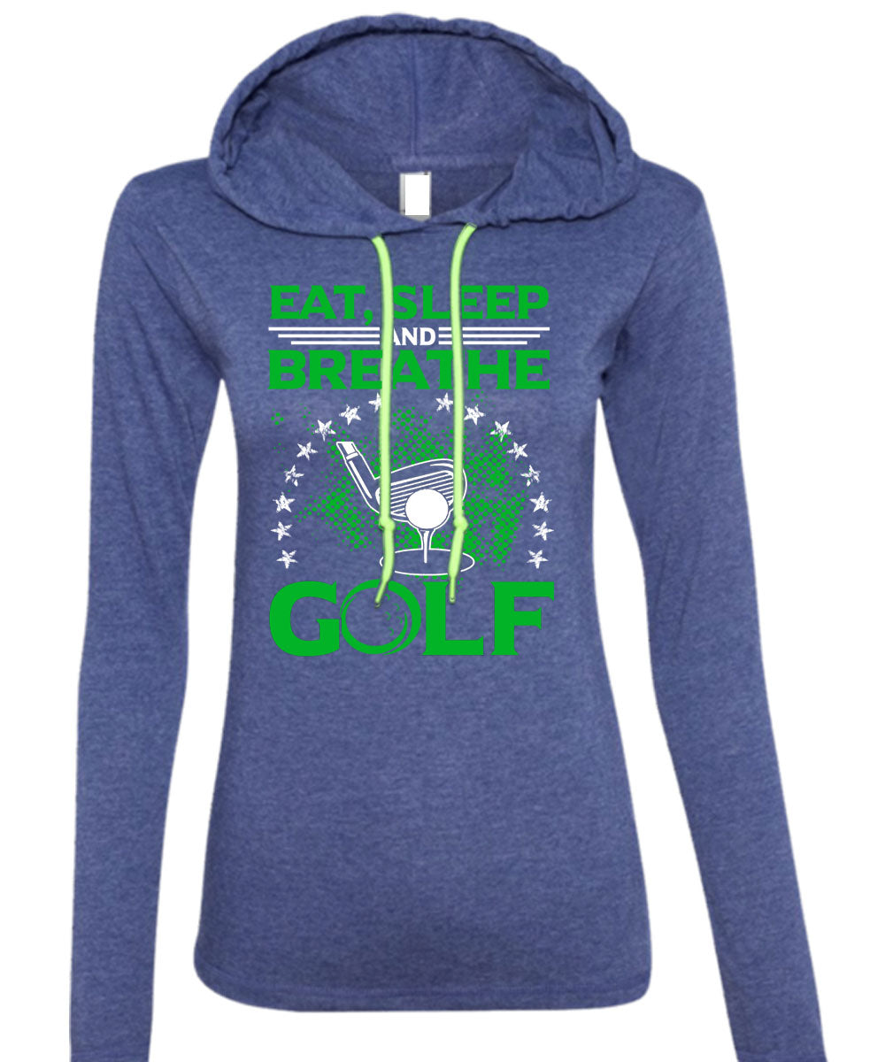 Eat Sleep Breathe And Golf T Shirt, I Love Golf T Shirt (Anvil Ladies Ringspun Hooded)