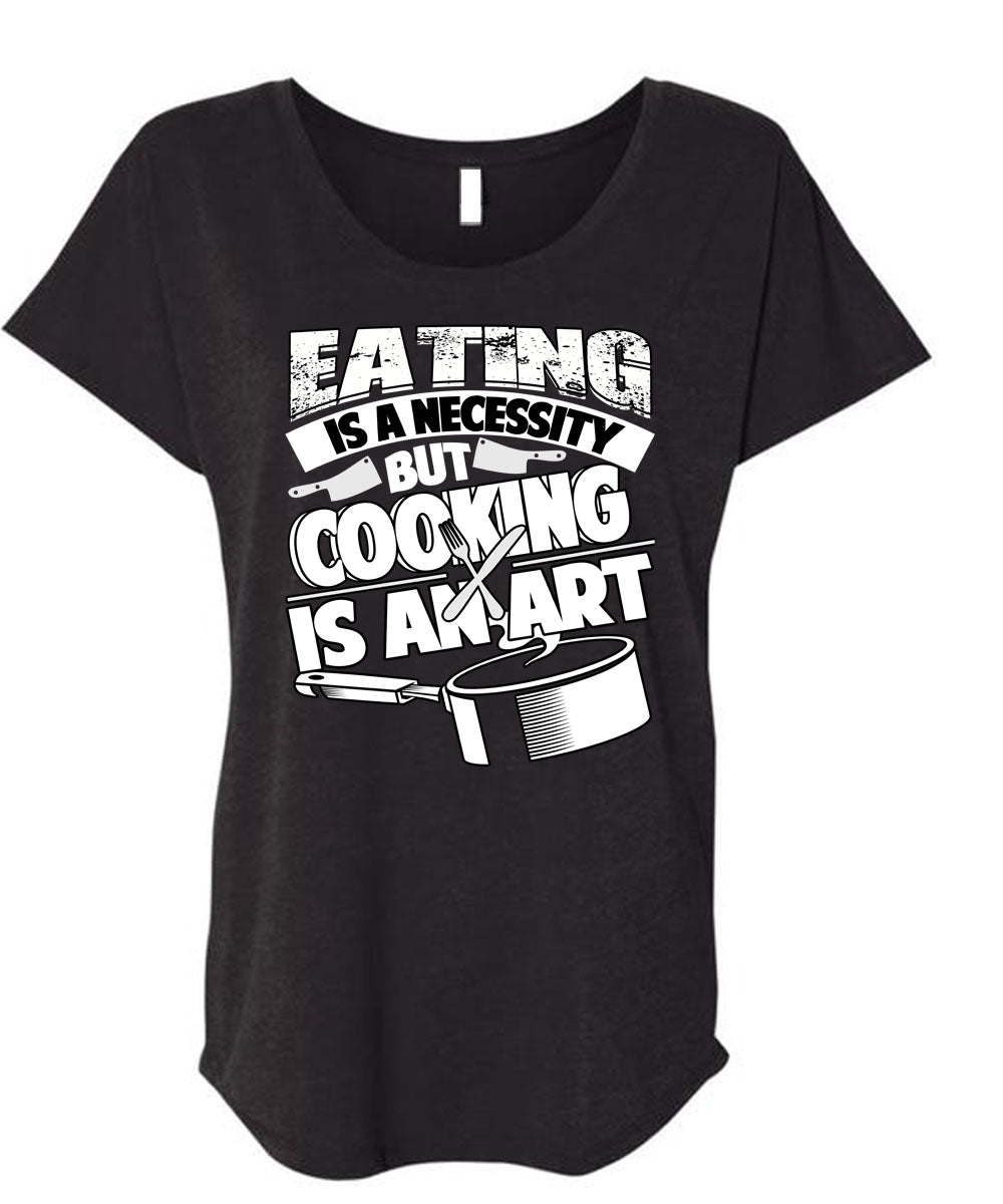 Eating Is A Necessity T Shirt, Cooking Is An Art T Shirt, Cool Shirt (Ladies' Triblend Dolman Sleeve)