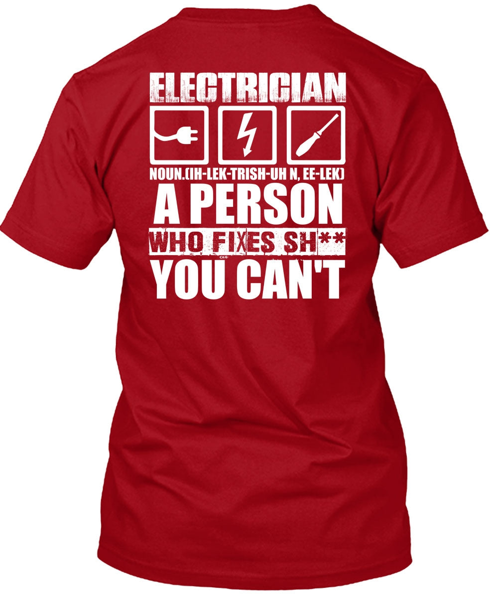 Electrician A Person Who Fixes You Can't T Shirt, Being An Electrician T Shirt