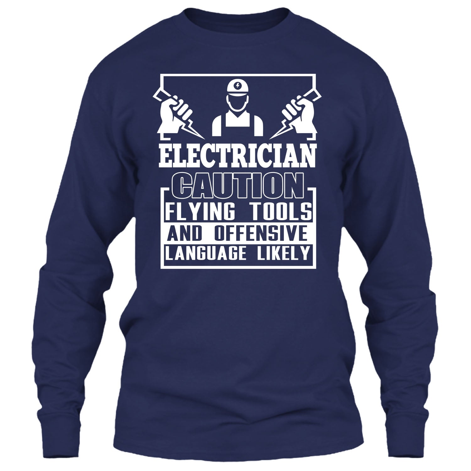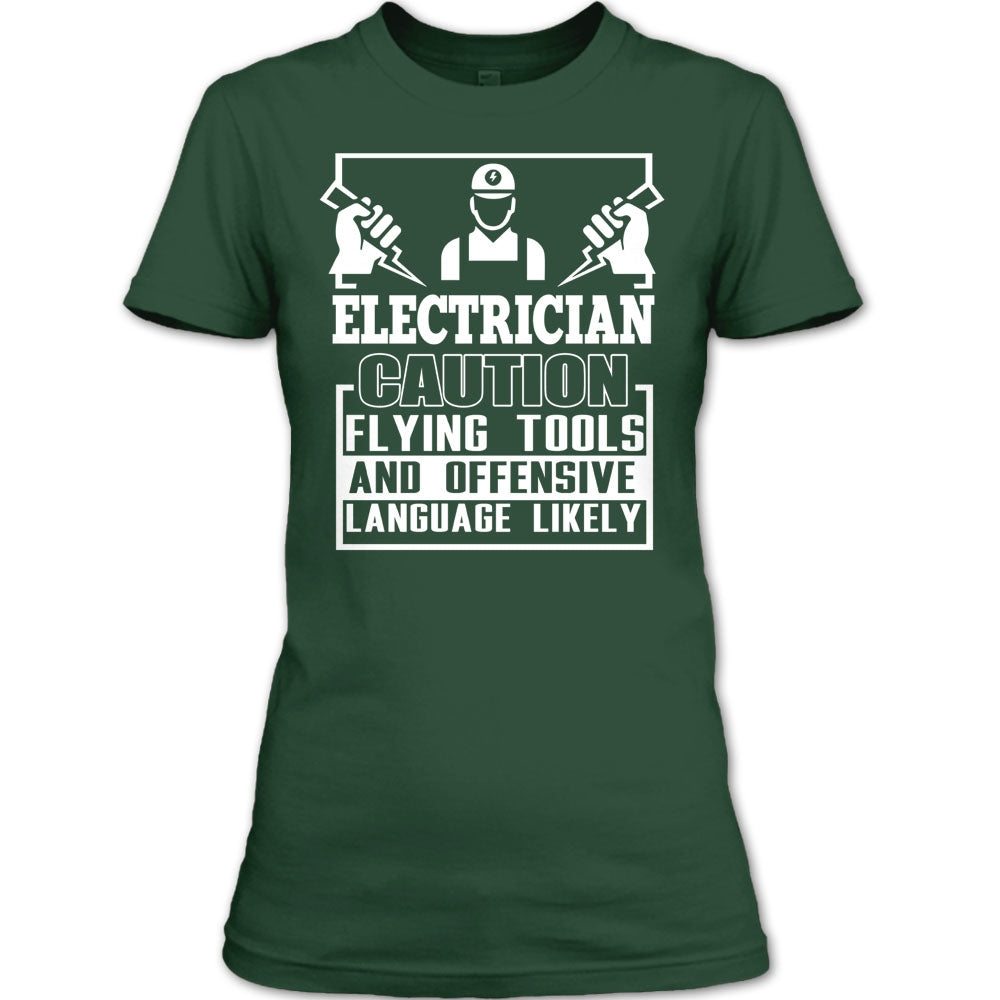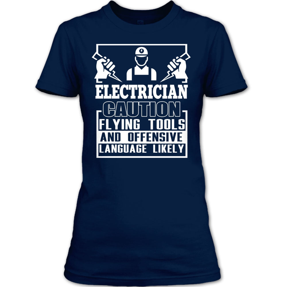 Electrician Caution T Shirt, Flying Tools And Offensive T Shirt