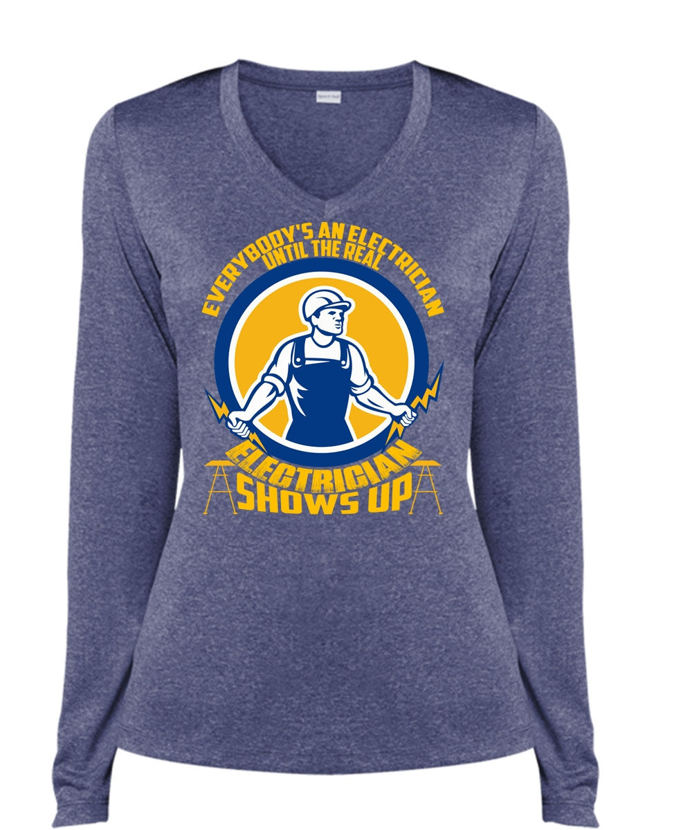 Electrician Shows Up T Shirt, Everybody's An Electrician T Shirt, Cool Shirt (Ladies LS Heather V-Neck)