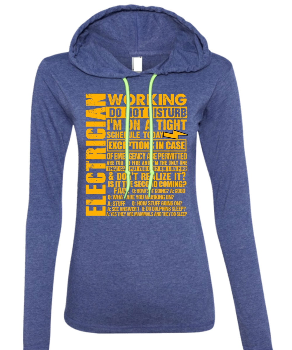 Electrician Working Do Not Disturb T Shirt, I'm On A Tight T Shirt (Anvil Ladies Ringspun Hooded)