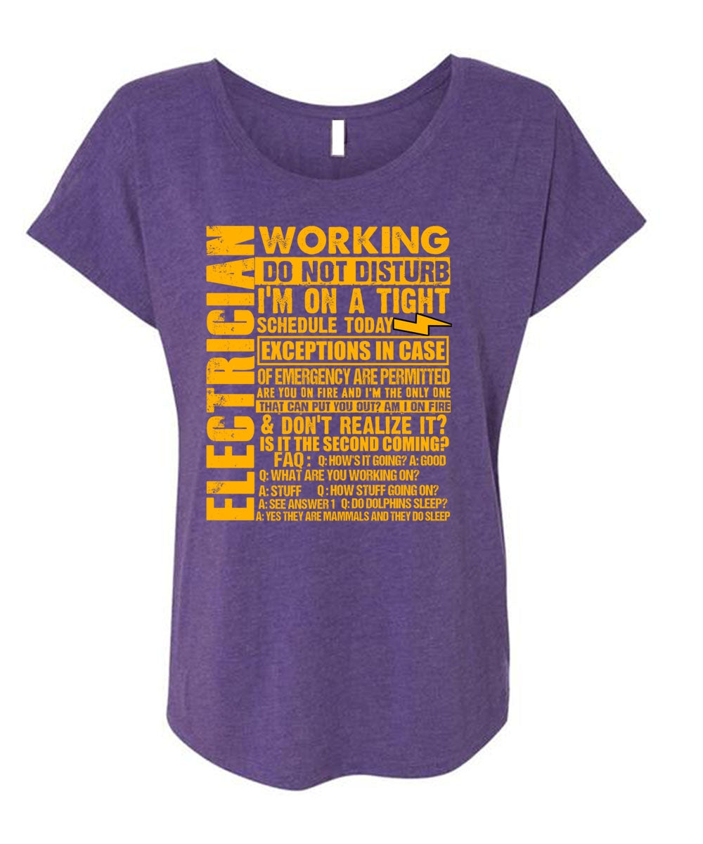 Electrician Working Do Not Disturb T Shirt, I'm On A Tight T Shirt, Cool Shirt (Ladies' Triblend Dolman Sleeve)