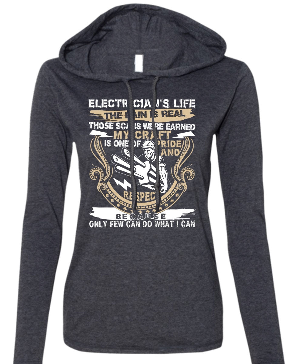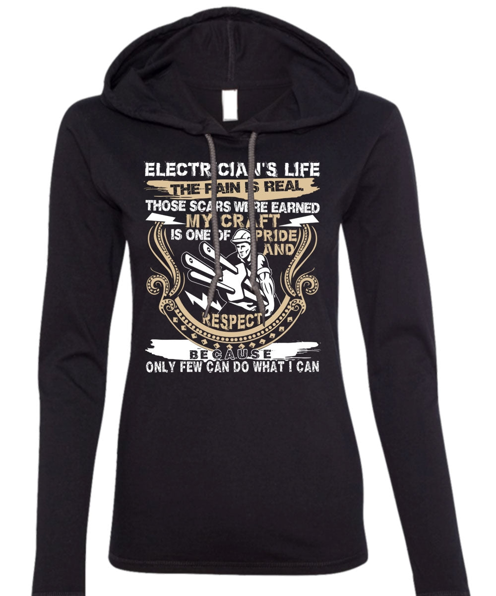 Electrician's Life The Pain Is Real T Shirt, Being An Electrician T Shirt (Anvil Ladies Ringspun Hooded)