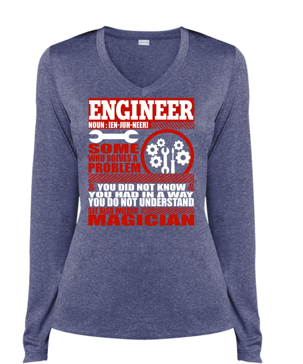 Engineer Who Solves A Problem T Shirt, You Did Not Know T Shirt, Cool Shirt (Ladies LS Heather V-Neck)