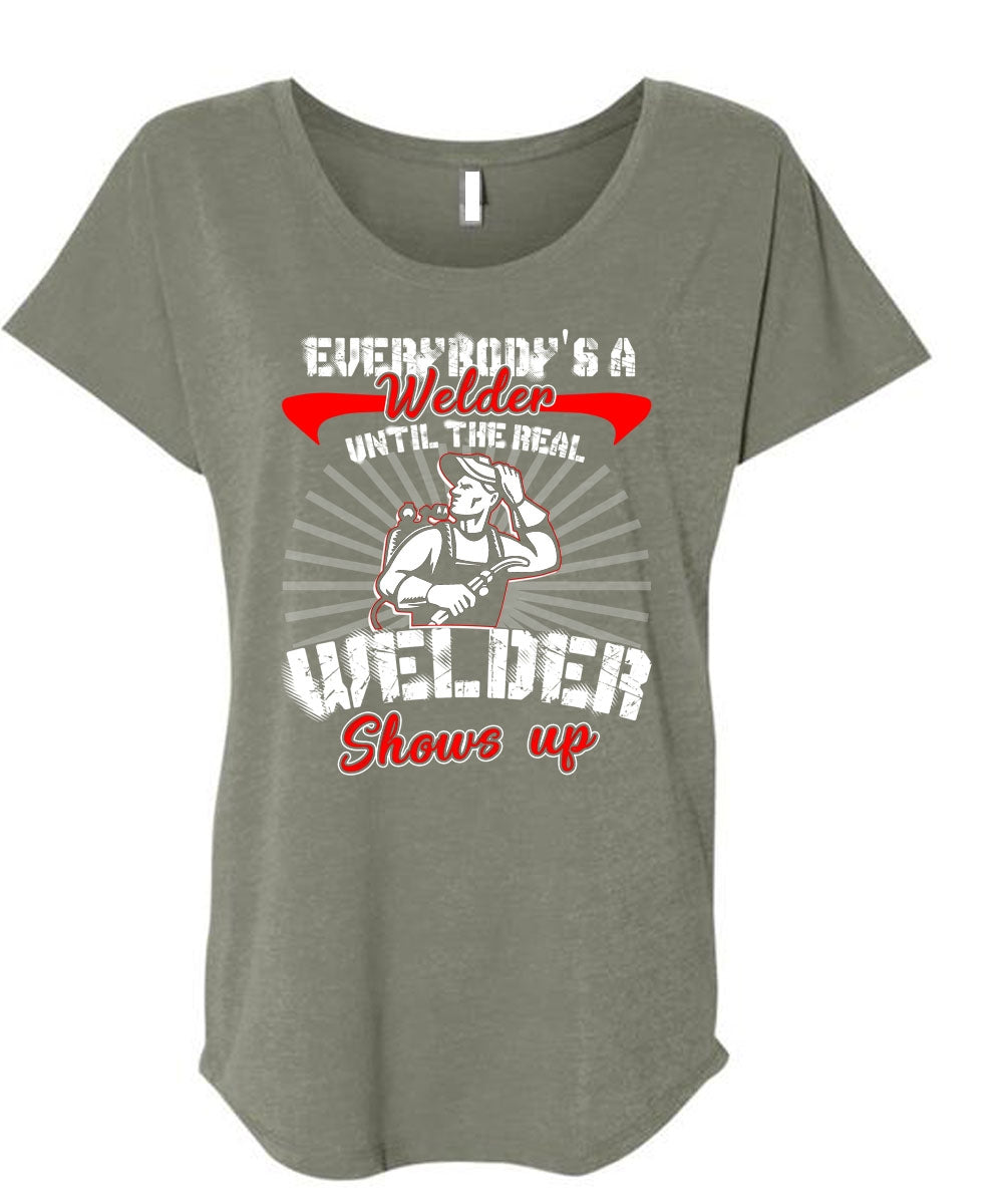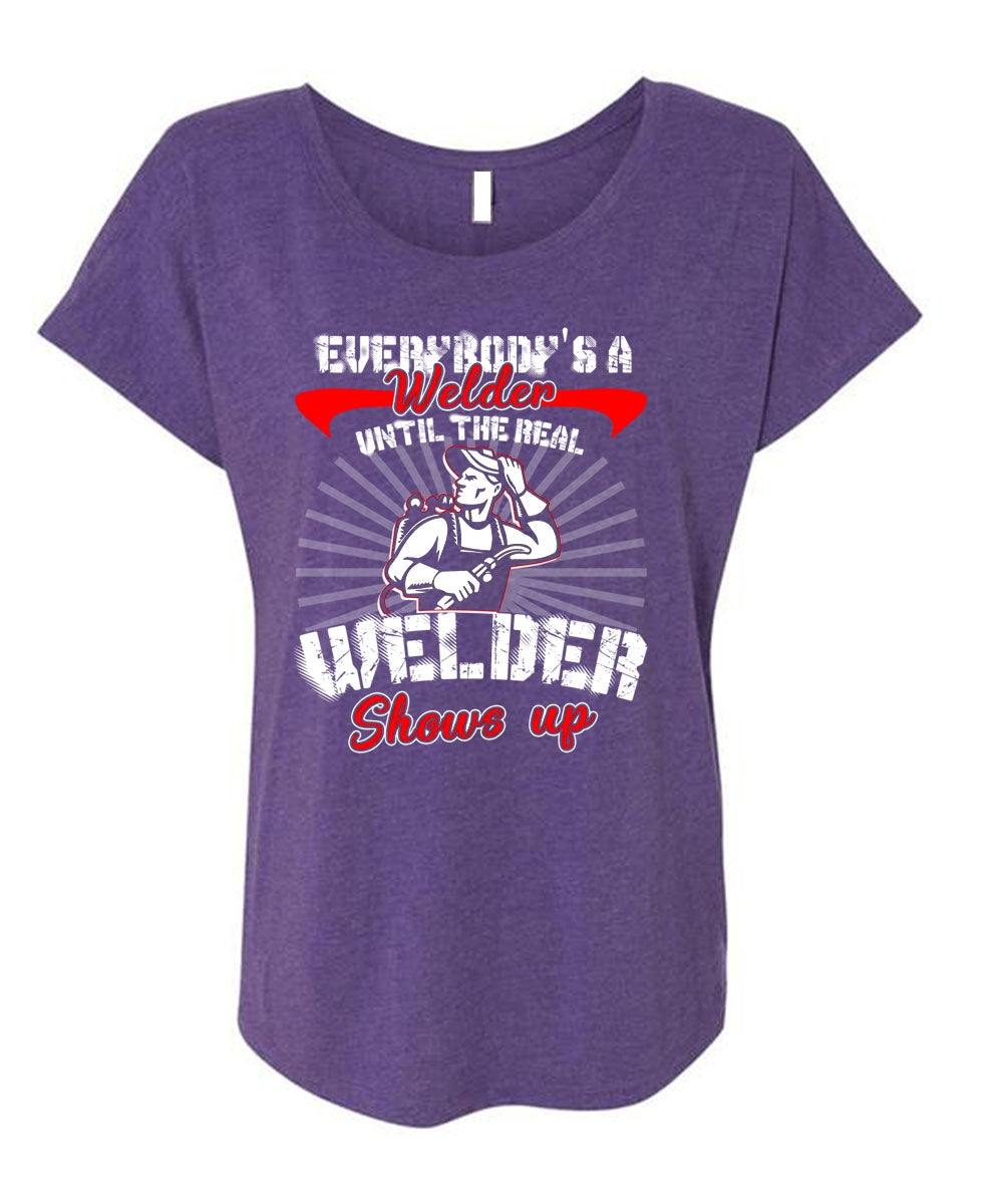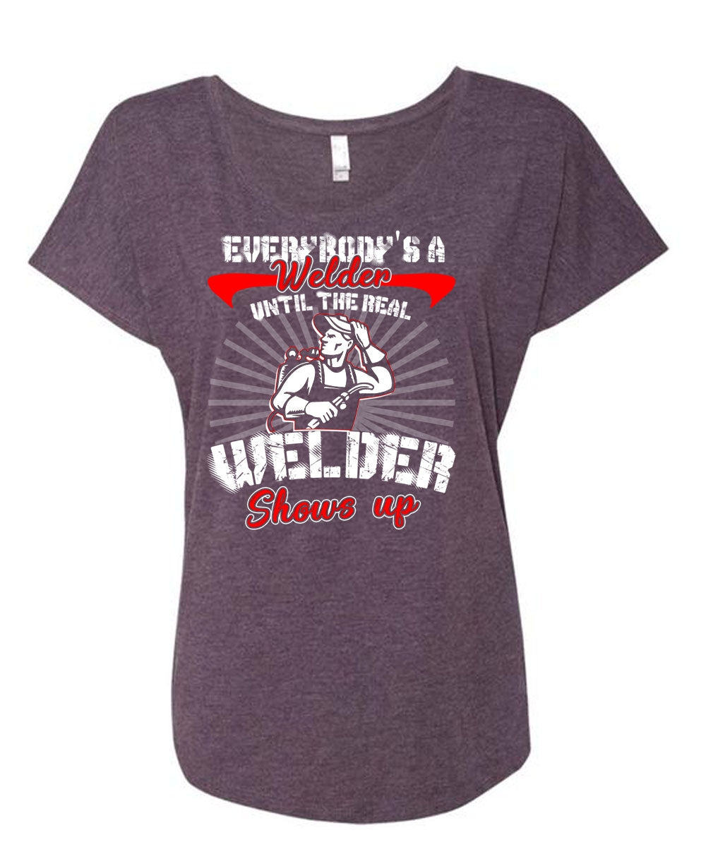 Everybody's A Welder T Shirt, Welder Shows Up T Shirt, Cool Shirt (Ladies' Triblend Dolman Sleeve)