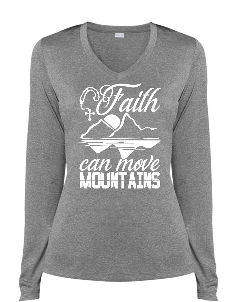 Faith Can Move Mountains T Shirt, Being A Hiker T Shirt, Cool Shirt (Ladies LS Heather V-Neck)