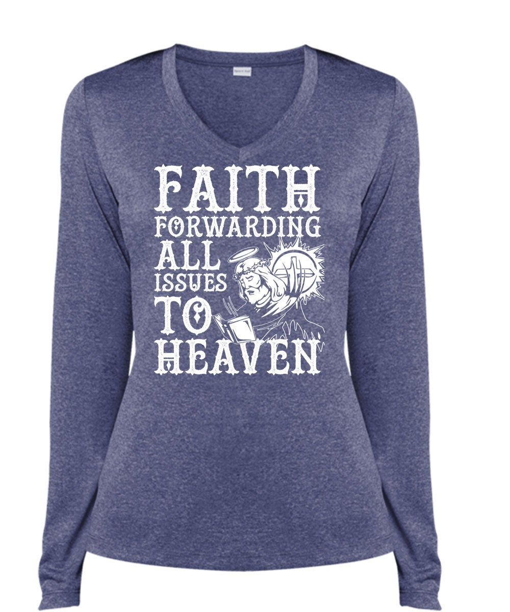 Faith Forwarding All Issues To Heaven T Shirt, My Life T Shirt, Cool Shirt (Ladies LS Heather V-Neck)