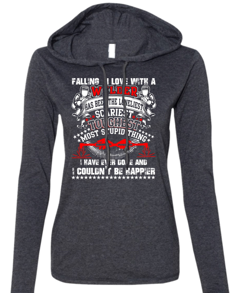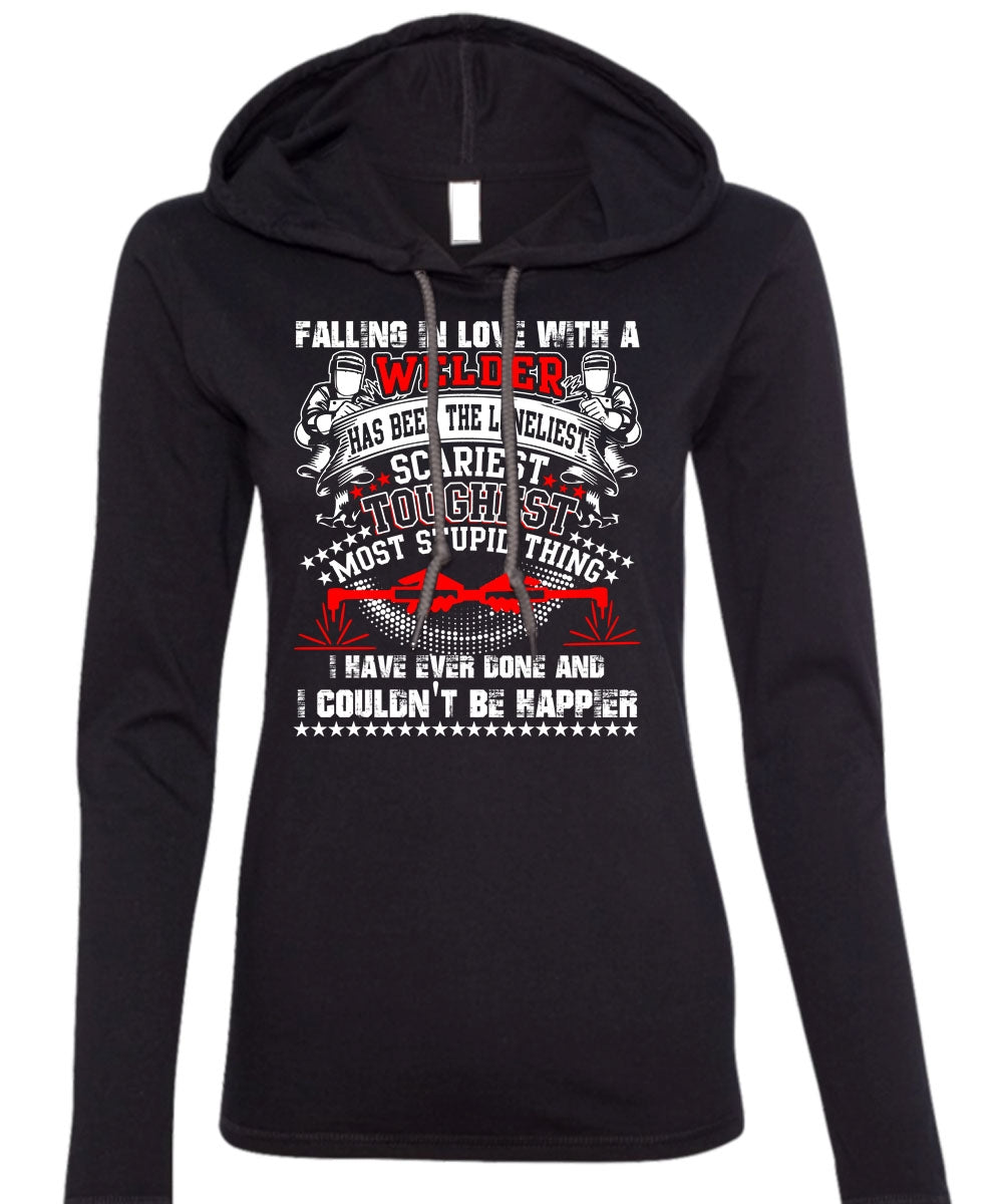 Falling In Love With A Welder T Shirt, I Couldn't Be Happier T Shirt (Anvil Ladies Ringspun Hooded)