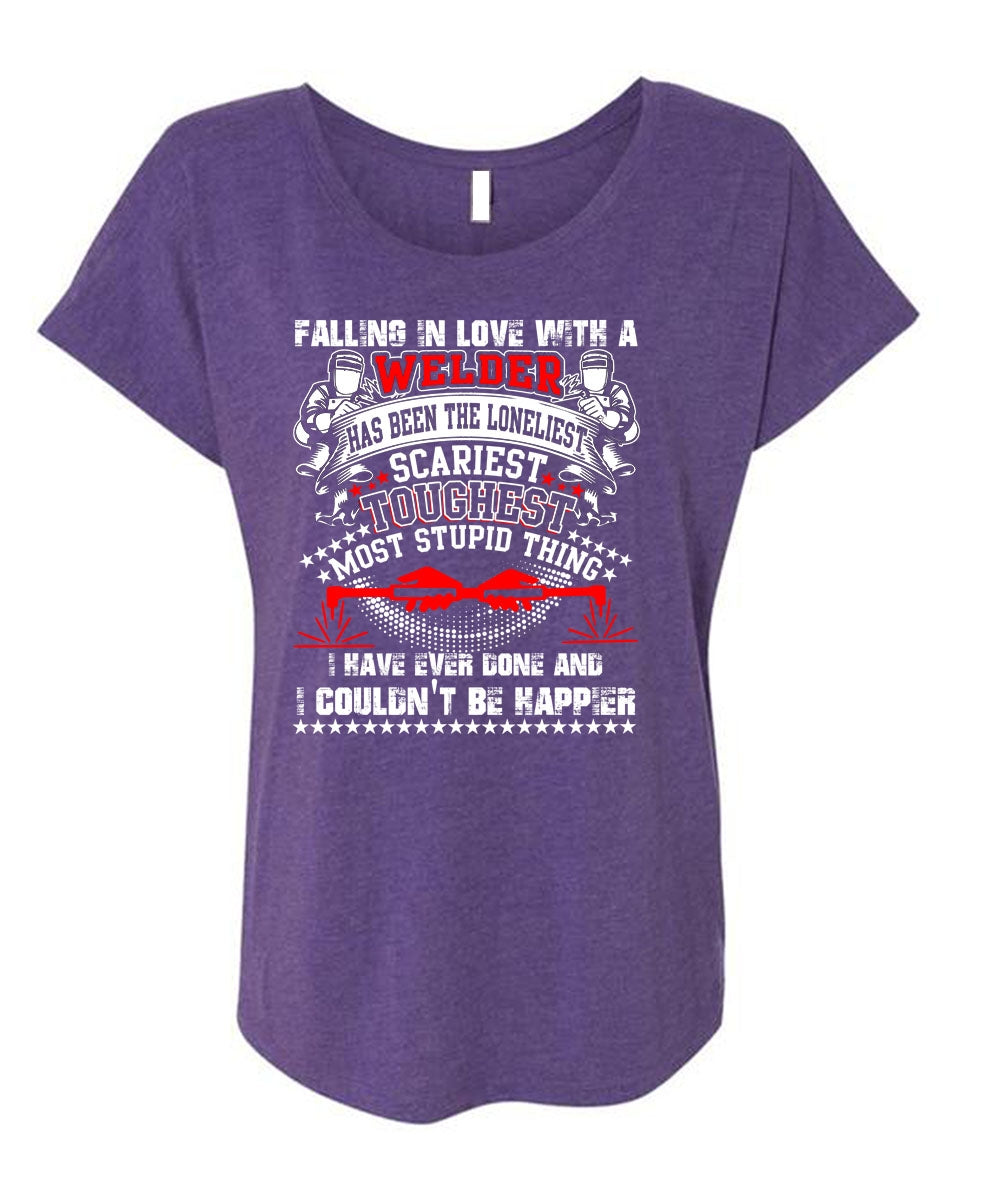 Falling In Love With A Welder T Shirt, I Couldn't Be Happier T Shirt, Cool Shirt (Ladies' Triblend Dolman Sleeve)
