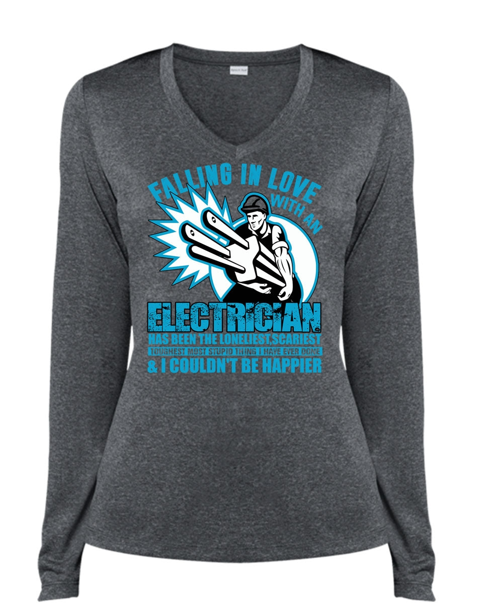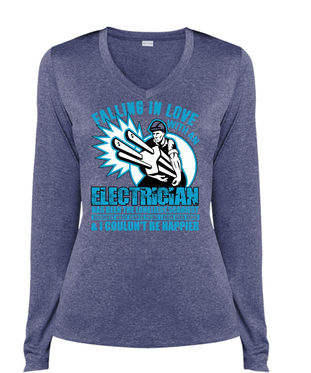 Falling In Love With An Electrician T Shirt, Being An Electrician T Shirt, Cool Shirt (Ladies LS Heather V-Neck)