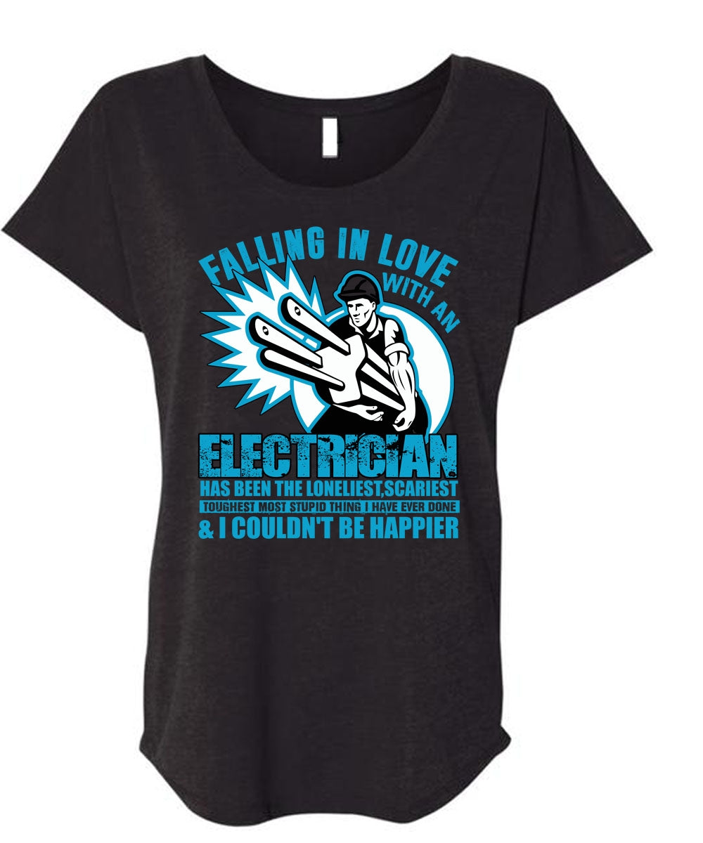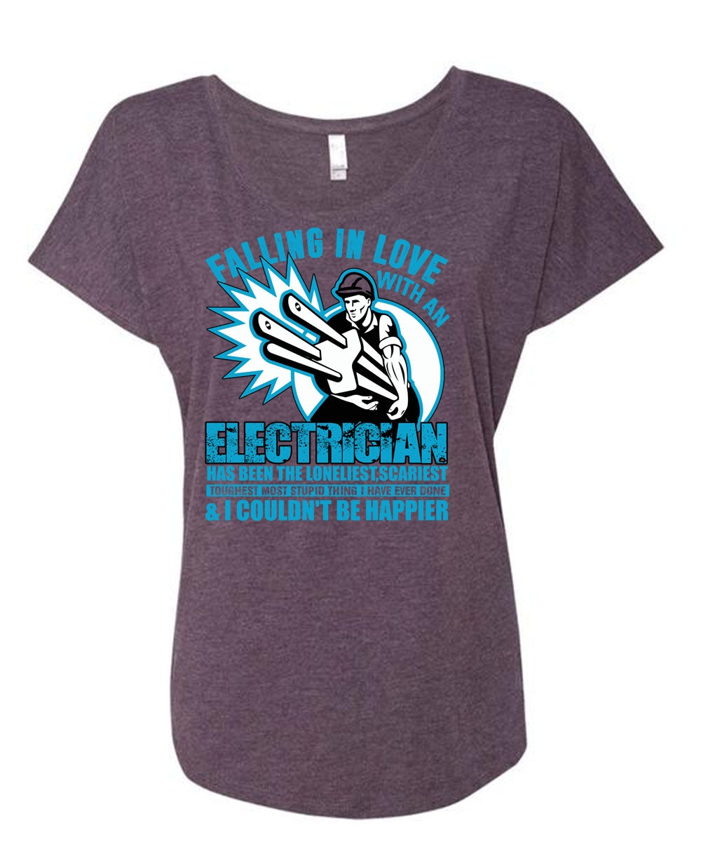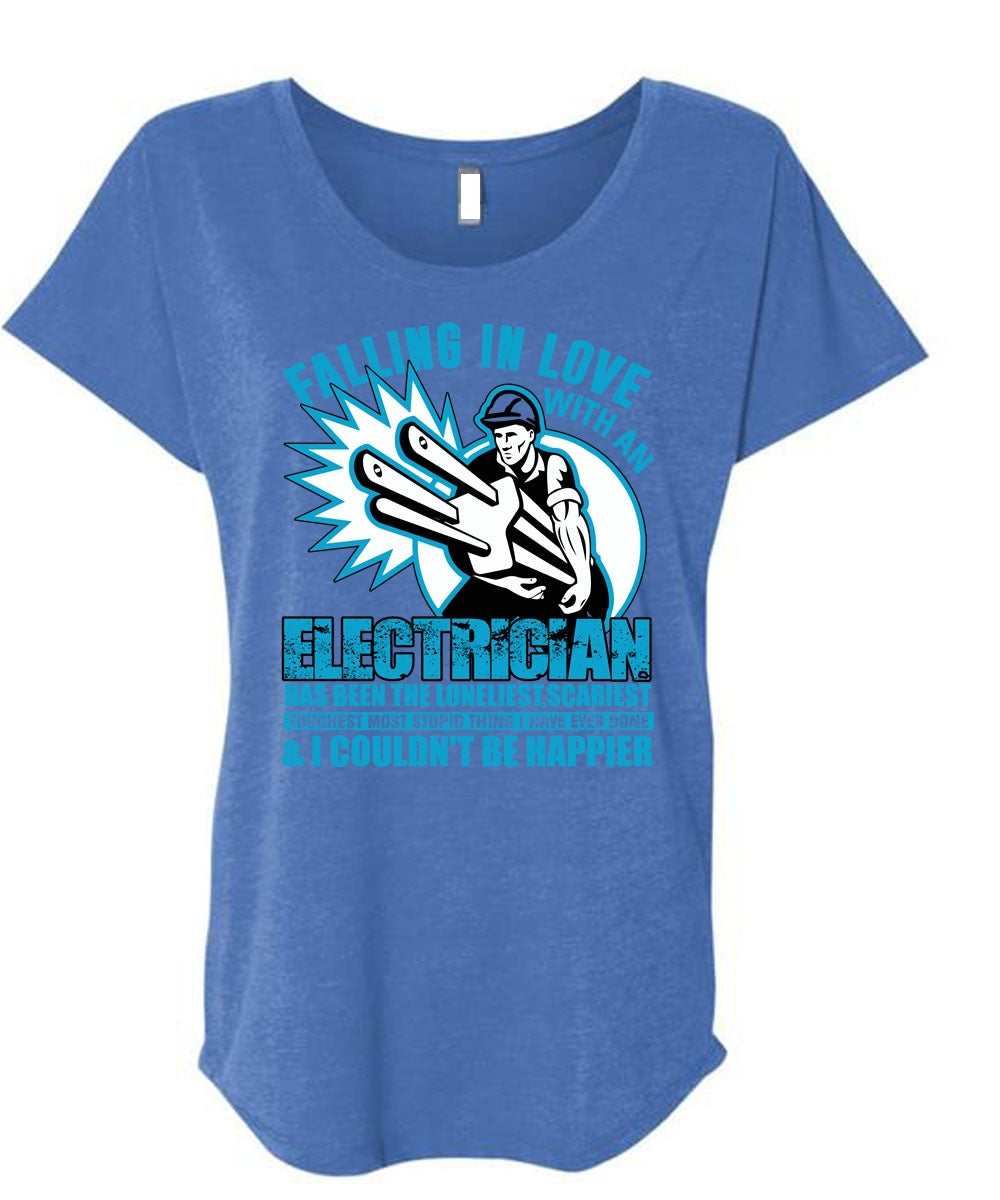 Falling In Love With An Electrician T Shirt, Being An Electrician T Shirt, Cool Shirt (Ladies' Triblend Dolman Sleeve)