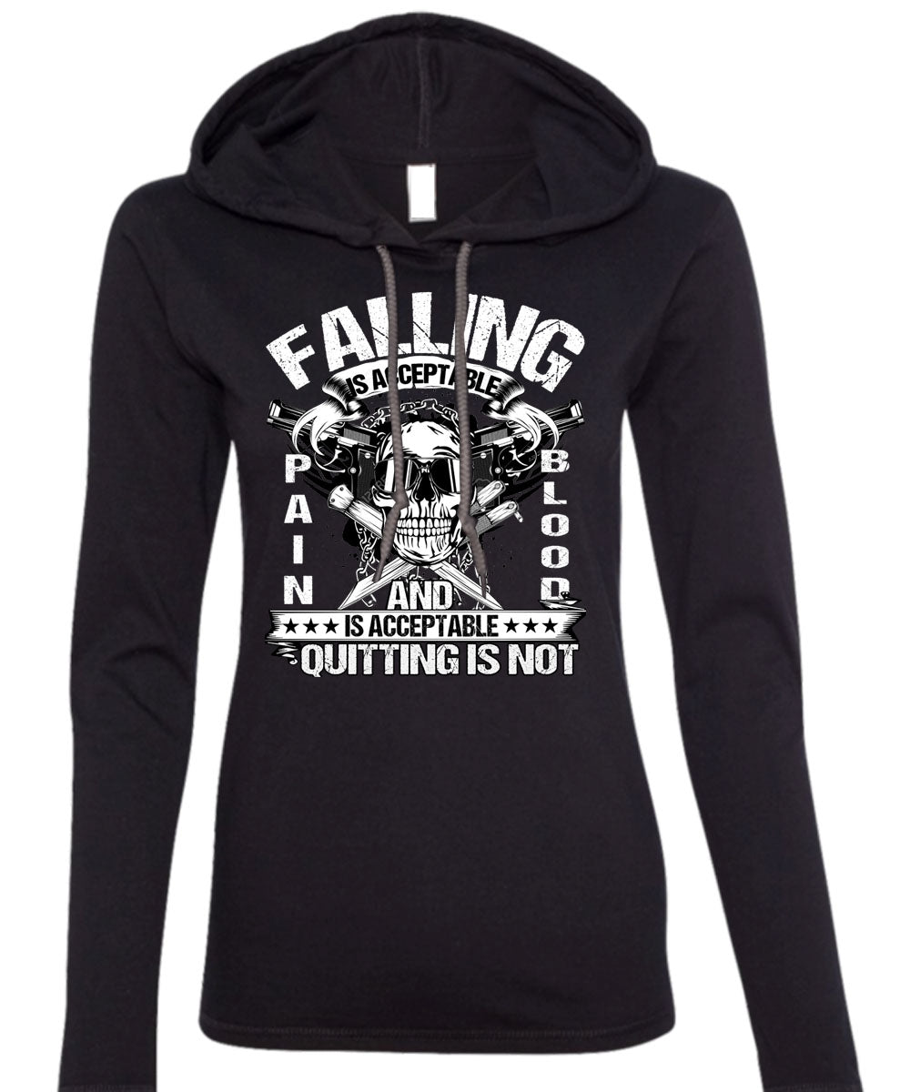 Falling Is Acceptable T Shirt, Being A Veteran T Shirt (Anvil Ladies Ringspun Hooded)