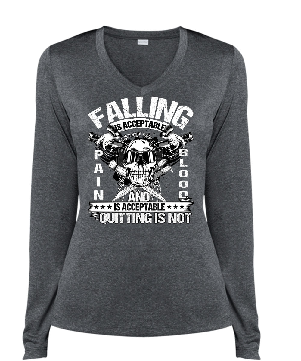 Falling Is Acceptable T Shirt, Being A Veteran T Shirt, Cool Shirt (Ladies LS Heather V-Neck)